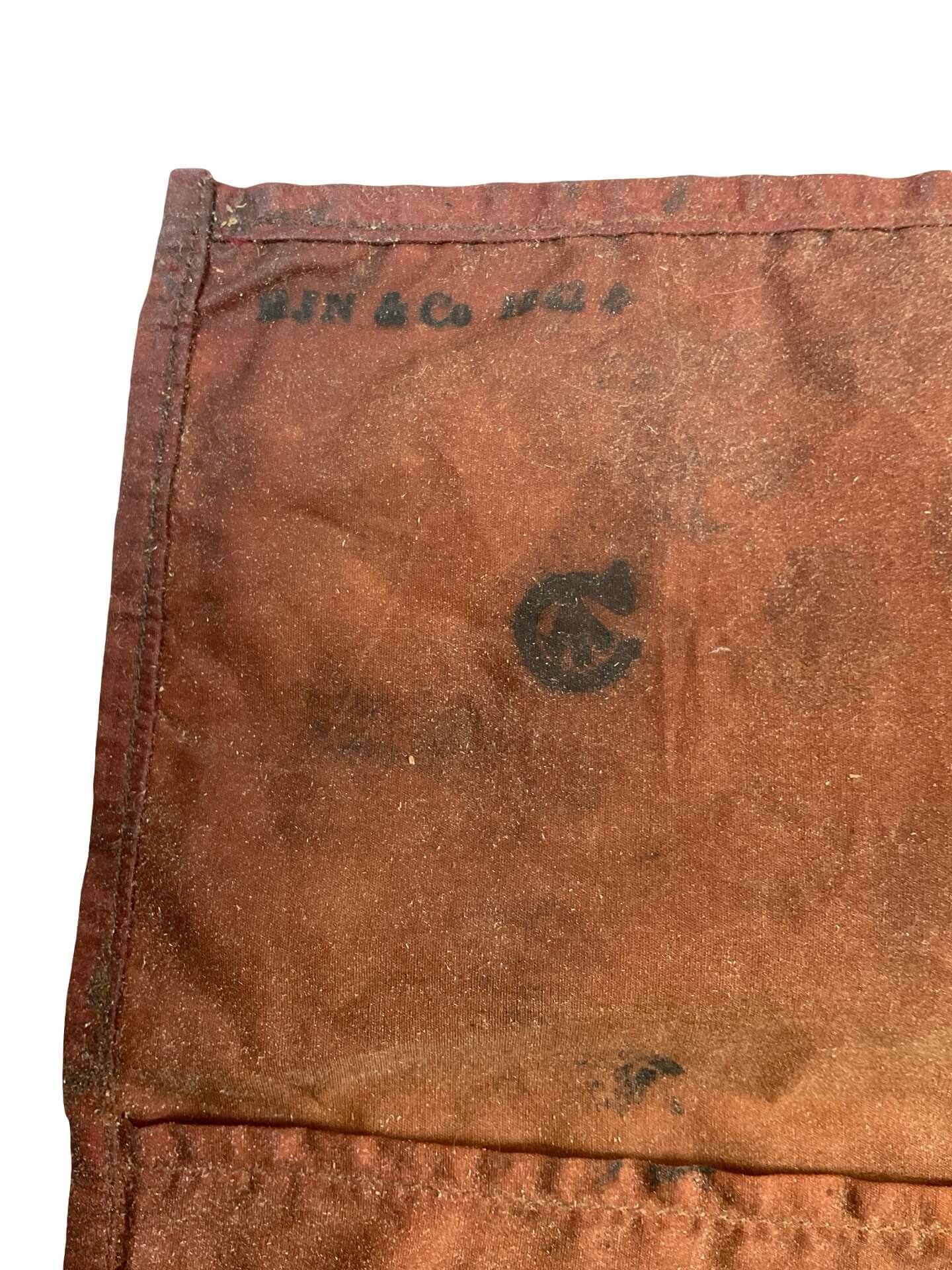The WW2 Canadian Gas Wallet C Broad Arrowed 1942 Dated is a personal protective equipment accessory issued to Canadian soldiers during the Second World War. Manufactured in 1942, this wallet was designed to carry essential items needed in the event of a gas attack, such as anti-gas ointment, eye shields, and instructions. The fabric construction is characteristic of Canadian military gear from the period, featuring the distinctive “C” broad arrow mark, which denotes Canadian government property. Stamped with the year of production, this wallet reflects both the practical considerations and manufacturing standards of wartime Canada. Issued alongside gas masks and other protective equipment, the gas wallet formed a key part of the standard issue kit for Canadian armed forces serving in various theatres. Collectors and historians value these wallets for their connection to everyday soldier experience and their role within the broader framework of Second World War military preparedness.