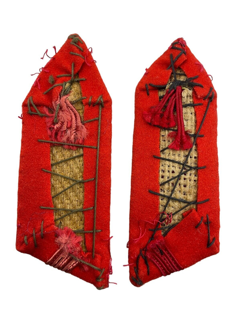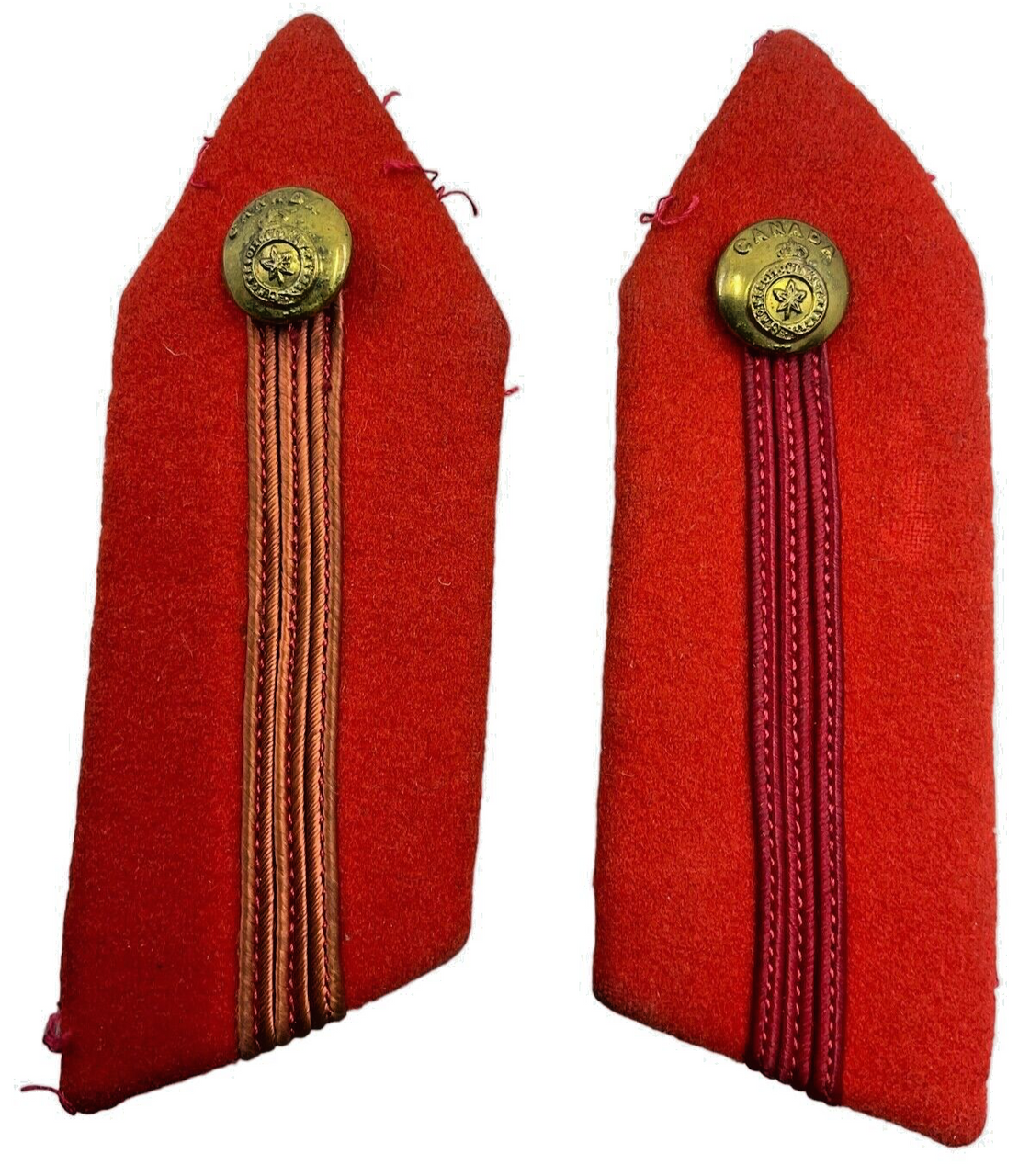 This distinctive pair of collar tabs insignia is a remarkable artifact from World War II, representing the high-ranking Canadian General Staff Officers. Each insignia is meticulously crafted, featuring the elegant and authoritative design symbolic of the era and the esteemed Canadian military tradition. These collar tabs were worn by senior officers, signifying their crucial role in strategic planning and leadership during some of the most significant military operations of the 20th century. The pair exemplifies the honor and responsibility borne by those who wore them. Collectors and historians will appreciate the intricate details and historical significance of these insignias. Ideal for military memorabilia enthusiasts, this set offers a tangible link to the pivotal contributions of Canadian forces in the global conflict, embodying the valor and dedication of those who served.
