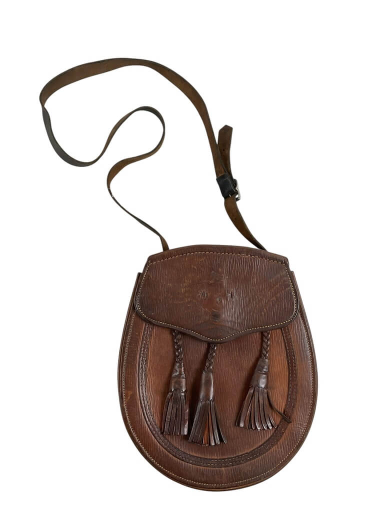 WW2 Canadian Irish Regiment of Canada Brown Leather Sporran With 3 Tassels and Strap