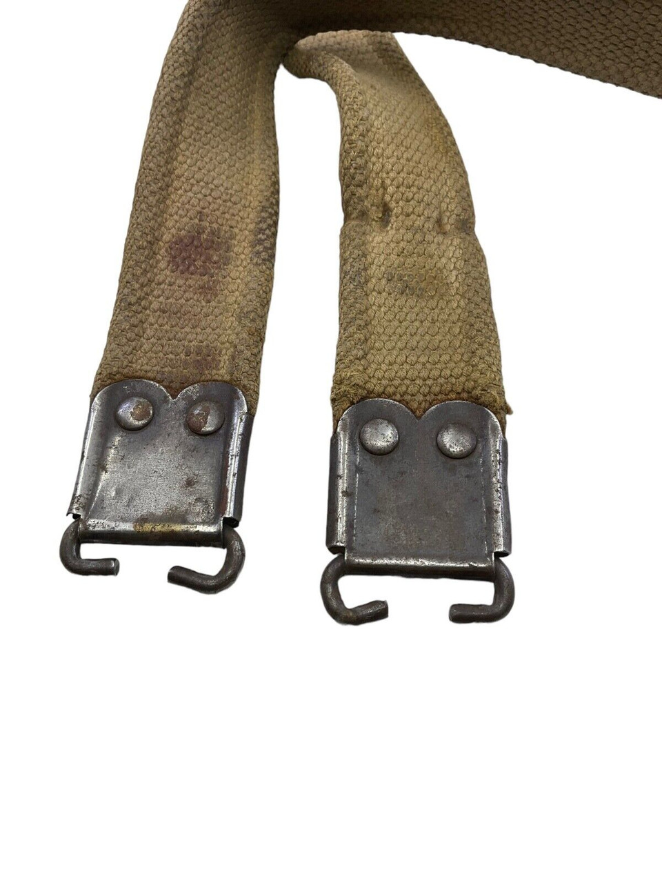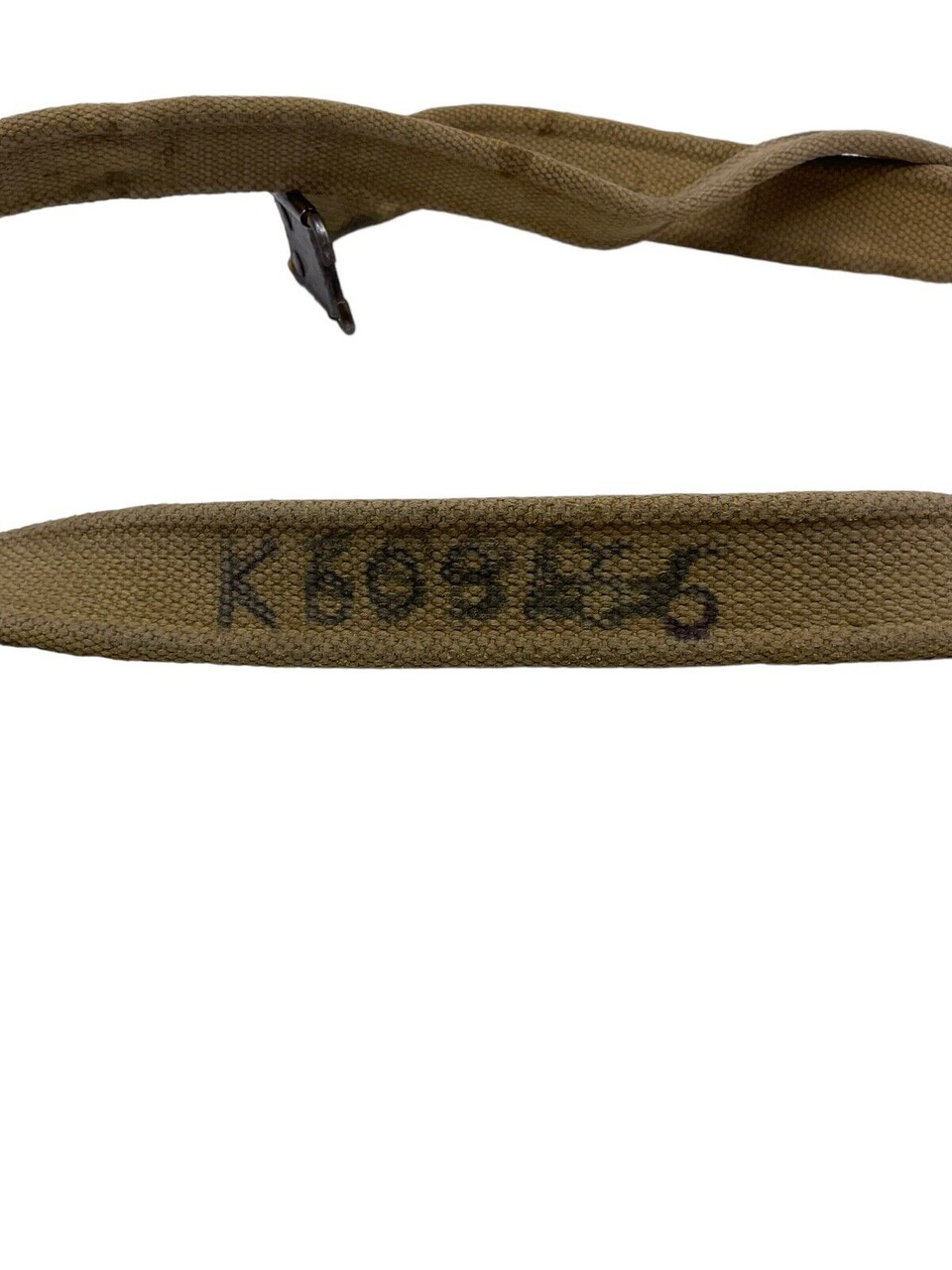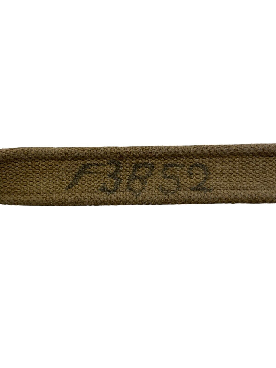 WW2 Canadian Lee Enfield Sling with Service Number This historically significant artifact is a genuine World War II Canadian Lee Enfield sling, complete with an original service number, making it a highly collectible piece. Crafted from durable canvas or leather, this sling was an essential accessory for the legendary Lee Enfield rifle, used by Canadian forces during the conflict. The presence of the service number adds a unique provenance, potentially offering a direct link to a specific soldier’s service history. Ideal for collectors of military memorabilia, history enthusiasts, or reenactors, this Lee Enfield sling not only represents a functional component of wartime equipment but also serves as a poignant reminder of the bravery and service of Canadian troops during World War II. Whether displayed in a collection or used to complete a period-accurate restoration, this sling is a tangible connection to the historical events and personal stories of the past.