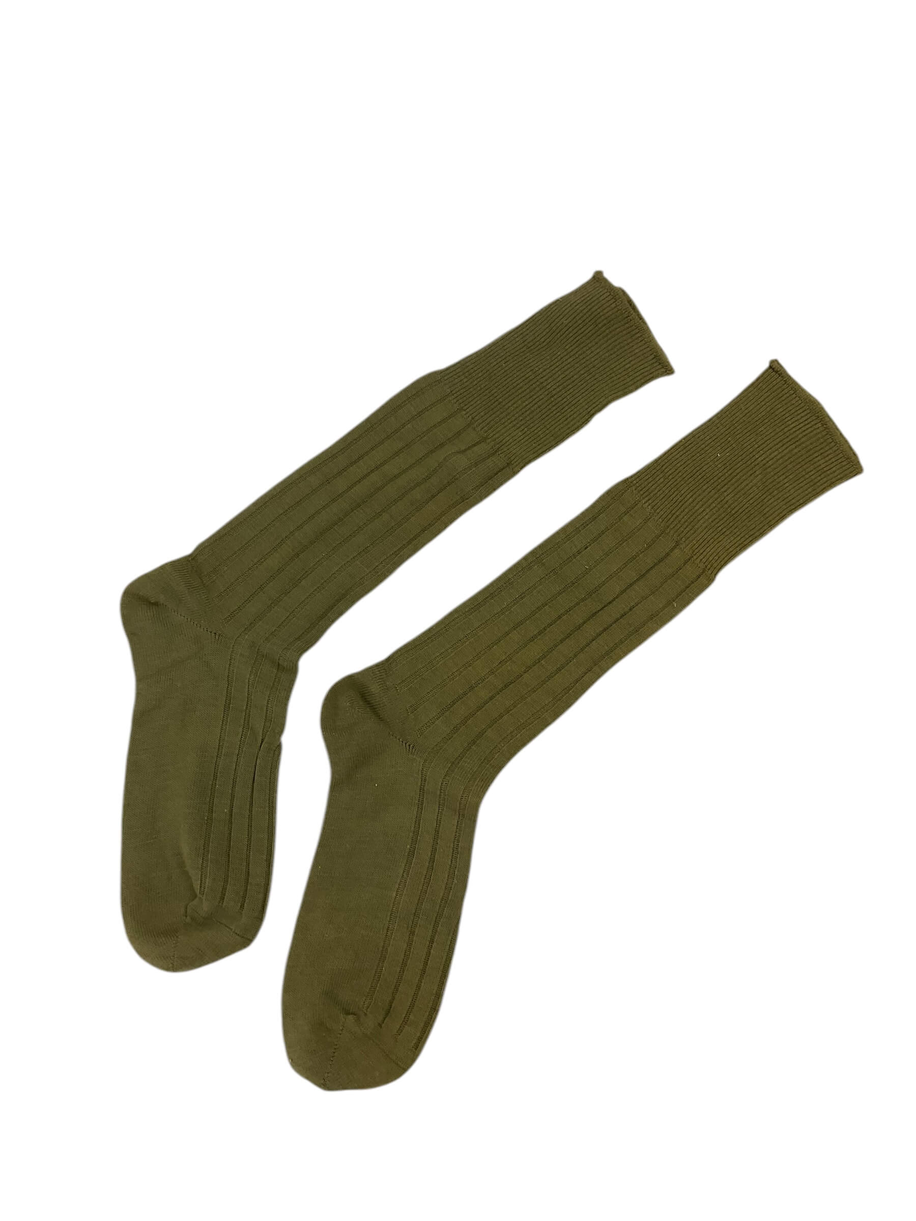 These are genuine, unworn WW2 Canadian long wool socks, a rare find for military collectors and history enthusiasts. Made during the 1940s, these socks were intended for Canadian soldiers to keep their feet warm in harsh conditions. Crafted from robust and high-quality wool, they are designed to be knee-high, offering excellent coverage and insulation. The natural beige color is typical of the era and adds an authentic vintage touch. Despite their age, these socks are in impeccable condition, having been preserved unworn for over seven decades. They carry not just the warmth and comfort of well-made woolen apparel, but also a piece of Canadian history intertwined with the world events of that time. These socks are a testament to the durability of military-grade clothing and the resilience of the men who would have worn them.