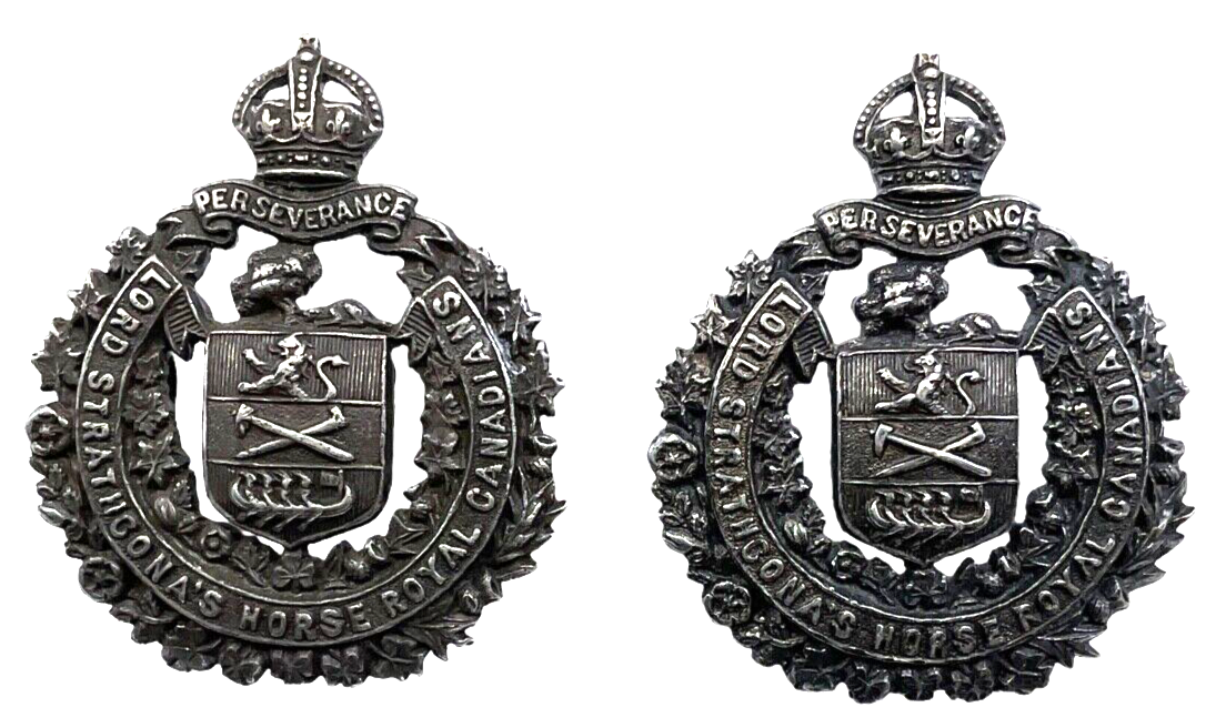 WW2 Canadian Lord Strathcona’s Horse Officers Silver Collar Badge Pair