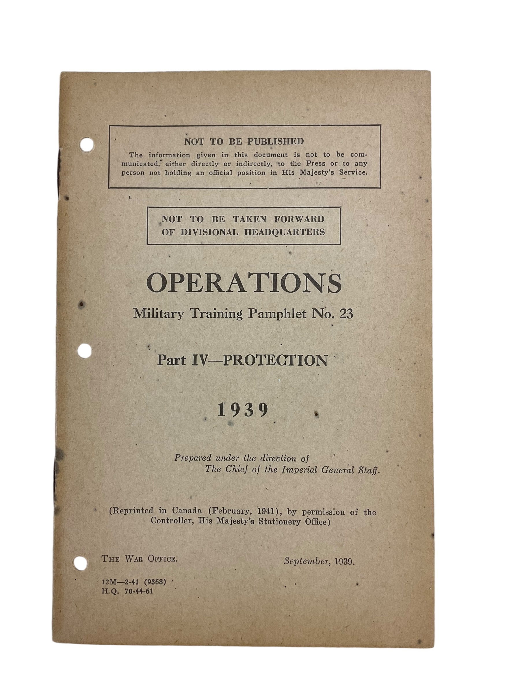 WW2 Canadian Manual No 23 Pt 4 IV Operations Protection 1939