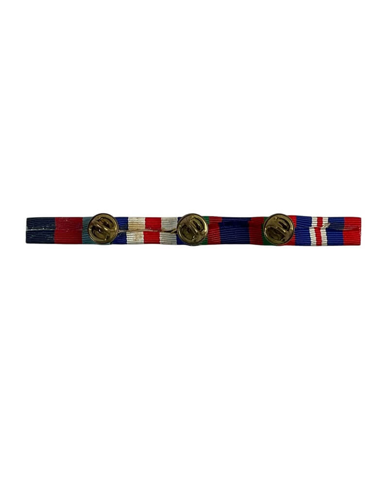 The WW2 Canadian Medal Ribbon Bar Full Size X 4 is a set of four original World War II-era ribbon bars issued to Canadian military personnel. Each ribbon bar represents a specific campaign or service medal awarded during the conflict, typically worn on the uniform to denote honors received. These full-size ribbon bars are constructed from woven fabric and are mounted on metal backing bars suitable for standard uniform wear. The selection of ribbons included may vary, often featuring combinations such as the 1939–45 Star, Defence Medal, Canadian Volunteer Service Medal, and War Medal 1939–45, among others. Ribbon bars served as a practical alternative to wearing full medals during daily duties, allowing for uniform identification of service and achievements. This group of four ribbon bars provides a representative example of Canadian military recognition during the Second World War, offering insight into the honors system of the period.