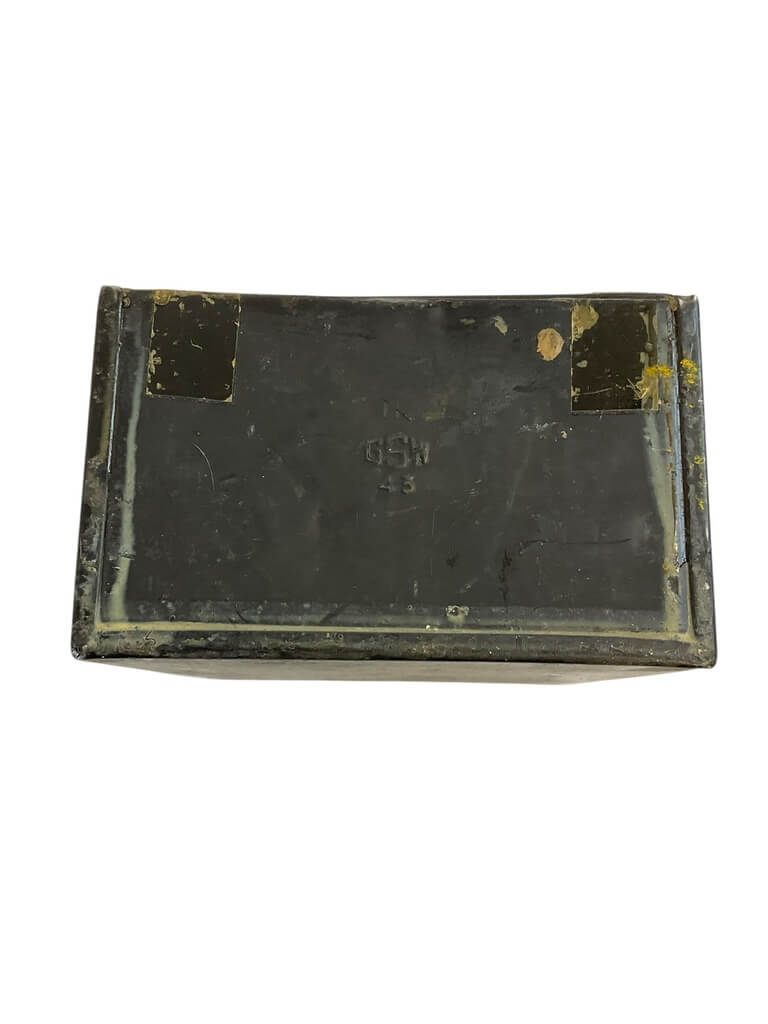 This WW2 Canadian Metal Ammo Box from 1943 is a genuine piece of military history. Crafted with robust metal, it was used by Canadian forces during World War II to transport and store ammunition. The box is dated 1943, reflecting its historical origin and usage in the midst of global conflict. Despite its age, it retains impressive durability, reflecting the quality of wartime production. Its weathered exterior, complete with original markings and paint, adds a touch of authenticity and gravitas. It stands as a powerful symbol of the Canadian war effort and would make a valuable addition to any military memorabilia collection. Whether you are a history enthusiast, a collector of military artifacts, or simply someone who appreciates items with a story, this WW2 Canadian Metal Ammo Box from 1943 offers a tangible link to a pivotal time in world history.