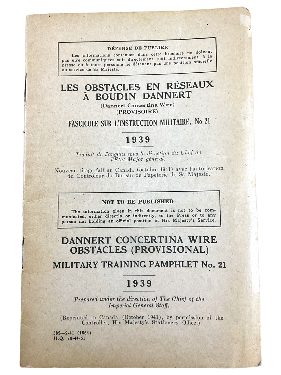 WW2 Canadian Military Training Operations No21 Wire Obstacles SC Reference Book, total no of pages 10 , with lots of information.