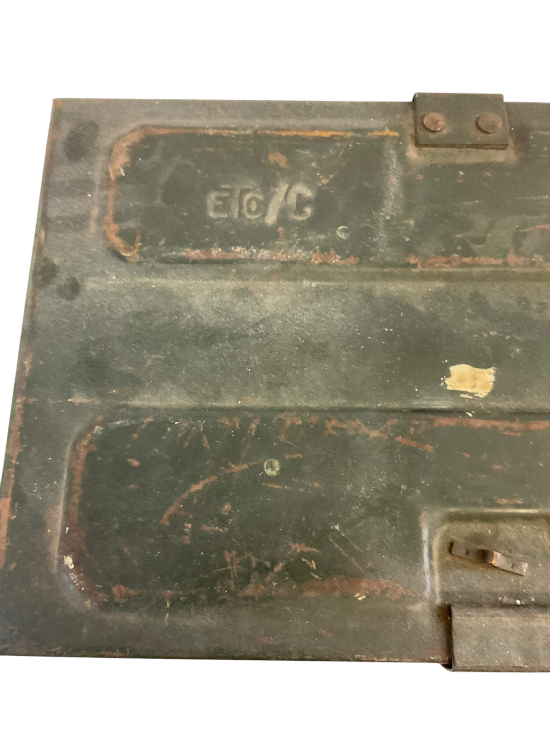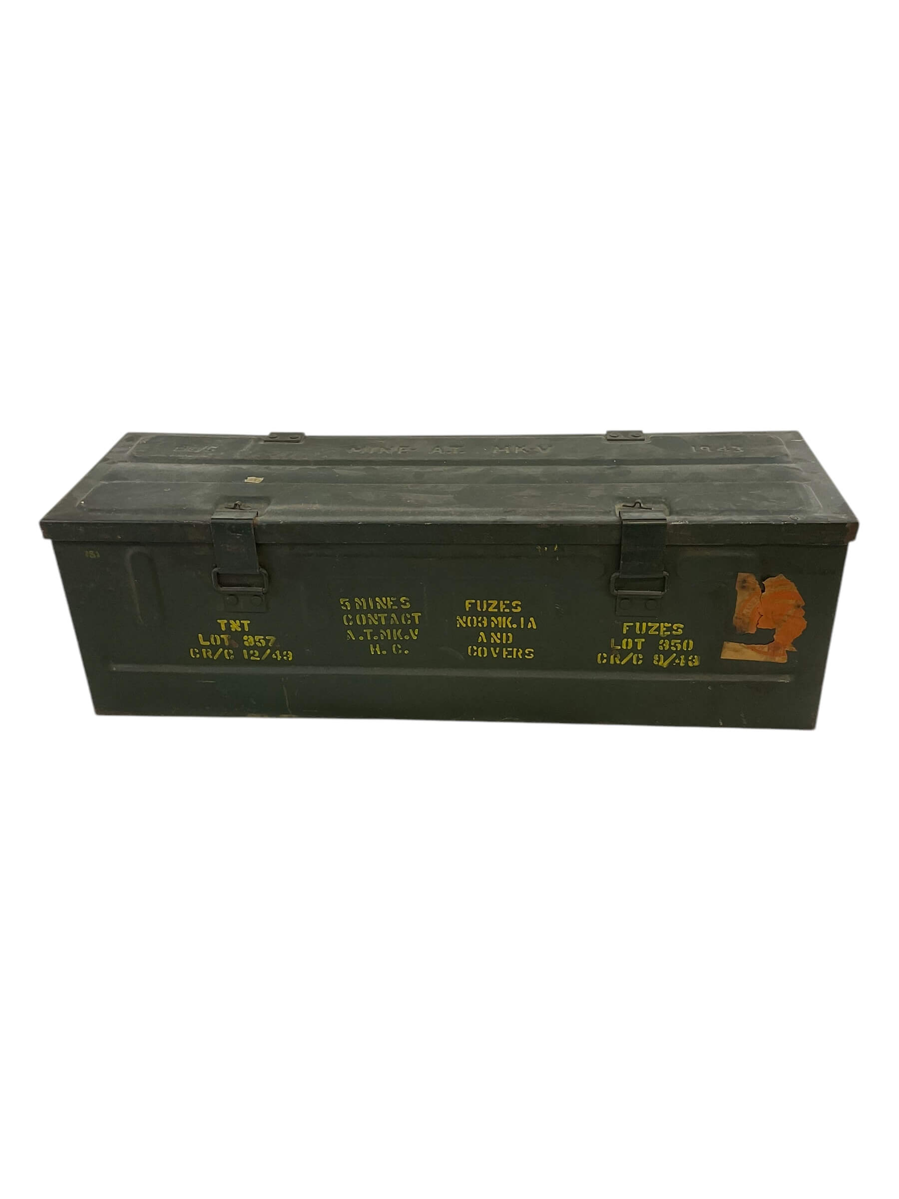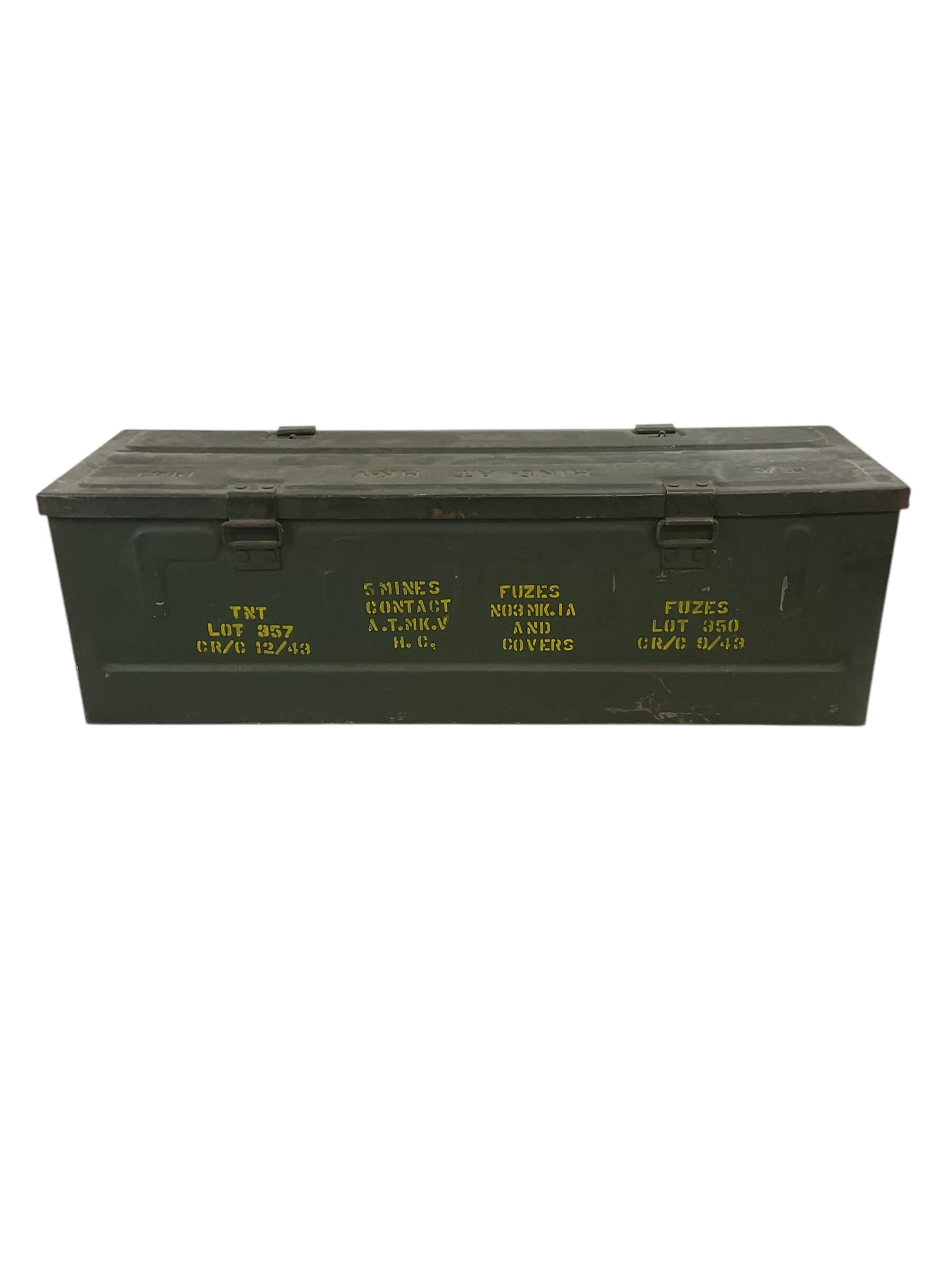 This item is an authentic WW2 Canadian Mine Anti-Tank Ammo Box, produced in 1943. Despite its age, the box has been well-preserved and retains its historic charm. The box is EMPTY, meaning it no longer contains the original ammunition. Crafted from robust, heavy-duty metal, it features a secure latch and a sturdy handle for portability. The exterior showcases the patina of time, with faint, weathered markings indicating its original military designation. This ammo box serves as a tangible piece of history, offering a glimpse into the experiences of Canadian soldiers during the Second World War. Whether for a military enthusiast or history collector, this item is a unique find, evoking a sense of nostalgia and respect for a bygone era. This ammo box is not only a historic artifact, but also an artistic object that tells a story of resilience, bravery, and sacrifice.