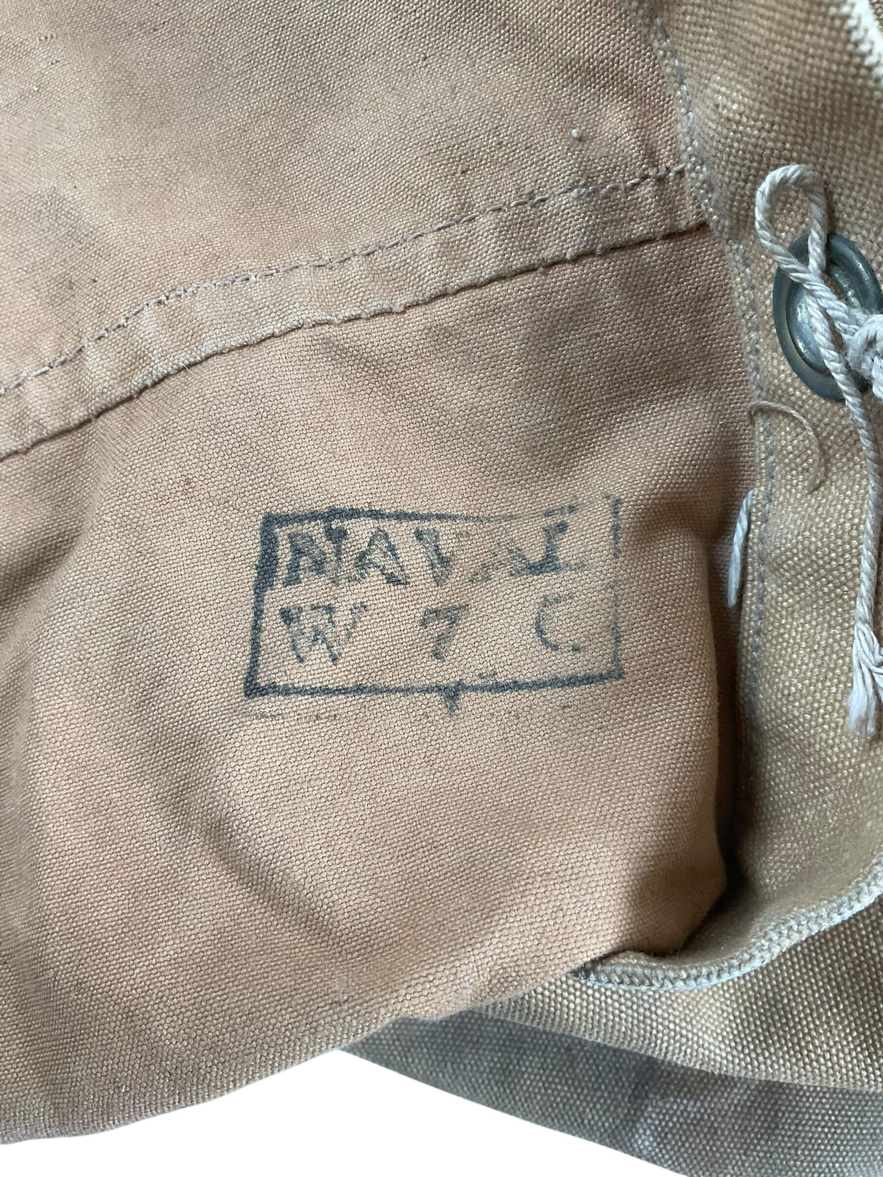This unique WW2 Canadian Navy Duffle Bag goes beyond its functional use, serving as a significant piece of history. Measuring 36″ X 24″, it is a substantial and sturdy canvas bag, displaying the standard issue for the Canadian Navy during the Second World War. Adding to its historical value is the personal touch: the bag is named, marking it as belonging to a specific serviceman. The cherry on top is the fascinating artwork that adorns the bag, enhancing its aesthetic appeal and possibly providing insight into the personality or experiences of its original owner. This bag is not just a practical item, but a piece of memorabilia, a testament to the trials and camaraderie of wartime life. The WW2 Canadian Navy Duffle Bag Named With Artwork is a real treasure for military history enthusiasts, offering a tangible connection to Canada’s past and the individuals who shaped it.