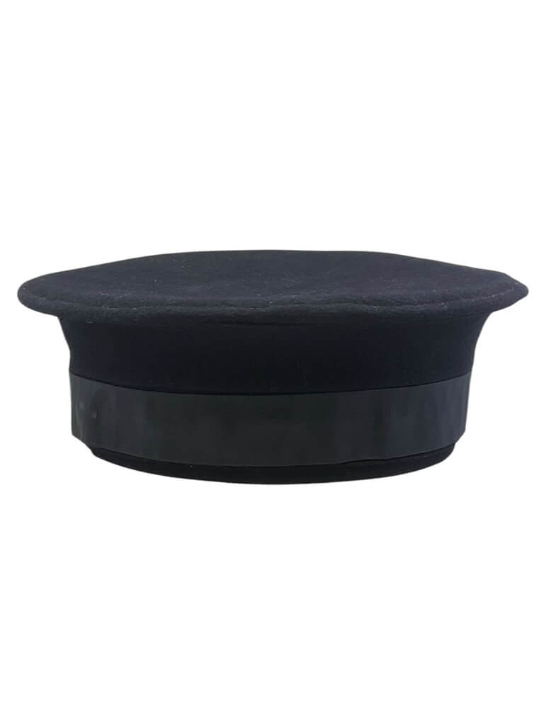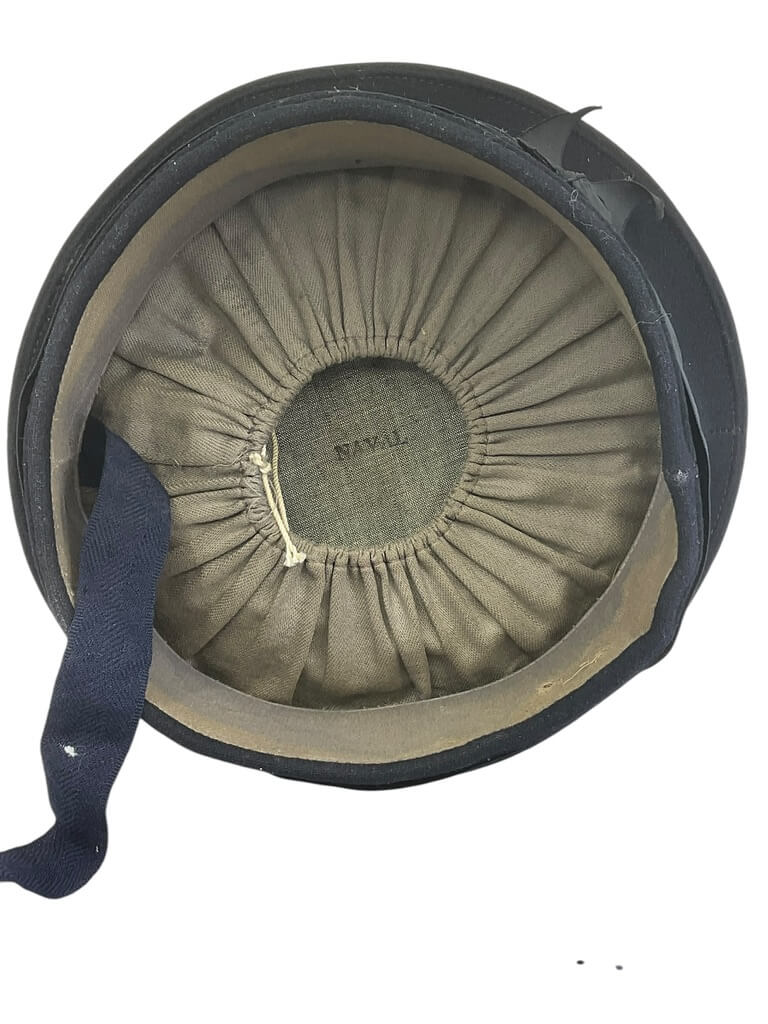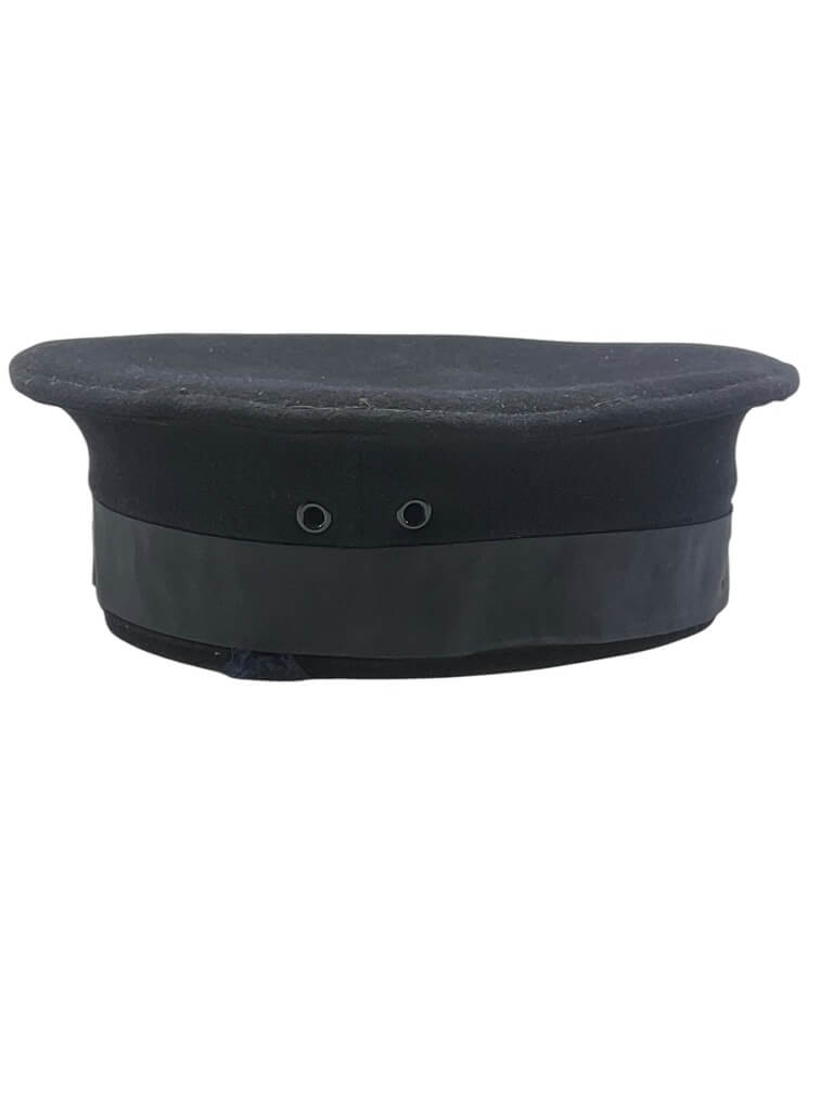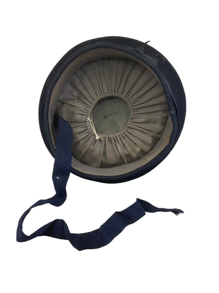 This collector’s item is a WW2 era Canadian Navy RCN Donald Duck Cap Hat in size 7 1/4. This cap is a noteworthy piece of military history, as it was the official uniform headgear worn by sailors of the Royal Canadian Navy during the Second World War. The cap features the iconic ‘Donald Duck’ style, named for its resemblance to the cartoon character’s sailor hat. Its authentic construction includes a black wool material and a traditional white ribbon, also known as a cap tally, displaying the letters ‘HMCS’. This cap tally is a distinguishing feature, as it signifies the ship to which the sailor was assigned. In good condition for its age, this cap is a valuable addition to any military memorabilia collection, offering a tangible link to Canada’s naval history.