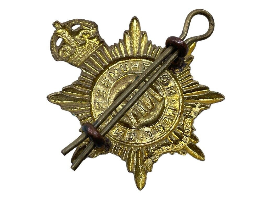 This World War II Canadian Northumberland Regiment Cap Badge is a remarkable artifact, evoking the storied past and valor of a revered military unit. Crafted with meticulous detail, the badge features the distinctive insignia of the Northumberland Regiment, reflecting its proud heritage and traditions. The design typically showcases symbols associated with the regiment’s identity, such as a stylized crown, maple leaf, or emblematic device, all rendered in durable metal, often brass or bronze, and highlighted with intricate engravings. Worn as part of the uniform by regiment members, this badge not only served as a mark of identification but also as a token of honor, unity, and exceptional service. Collectors and history enthusiasts cherish such items for their historical significance and craftsmanship. Owning this emblem offers a tangible connection to the bravery and sacrifices of Canadian soldiers who served during the tumultuous era of the Second World War.