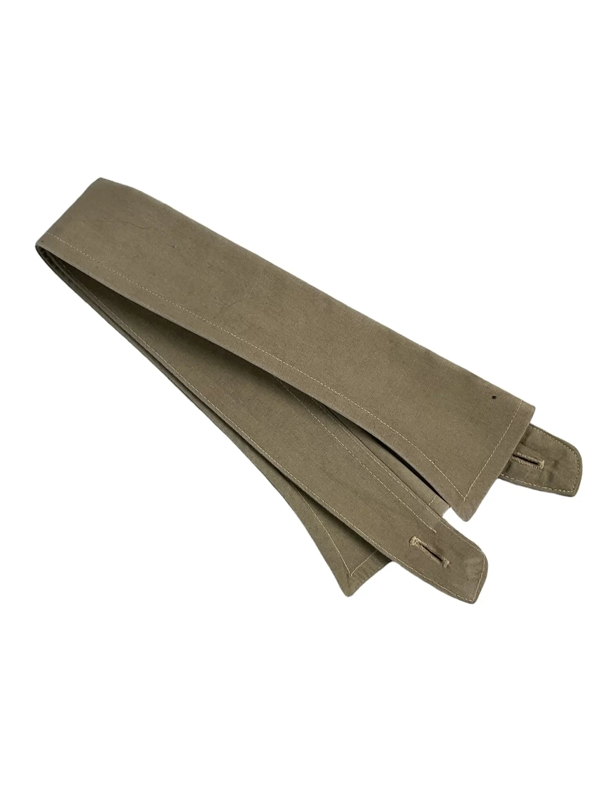 The WW2 Canadian Officers Tropical Button In Shirt Collar is a uniform accessory designed for Canadian military officers serving in tropical climates during the Second World War. This detachable collar was typically paired with lightweight, khaki drill shirts, enabling ease of laundering and improved comfort in hot, humid conditions. Constructed from cotton or a cotton blend, the collar features reinforced stitching and a buttonhole at each end, allowing it