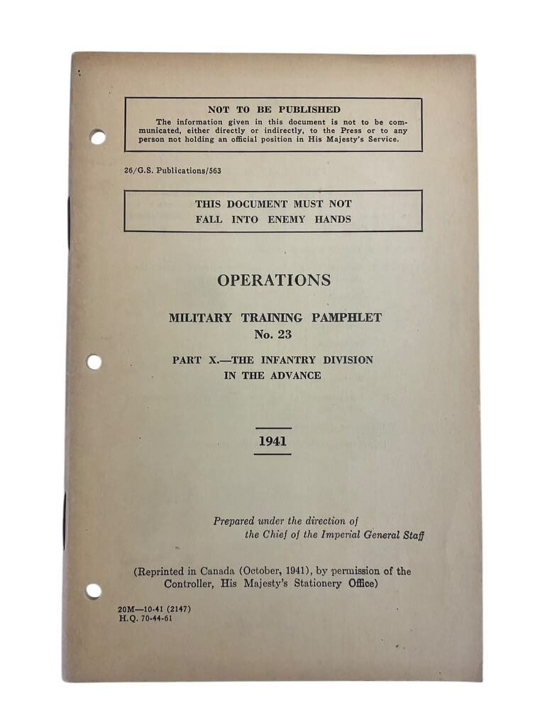 WW2 Canadian Operations Military Training Pamphlet No 23 Part 10 The Infantry Division in the Advance 1941 Used Softcover Reference Manual
