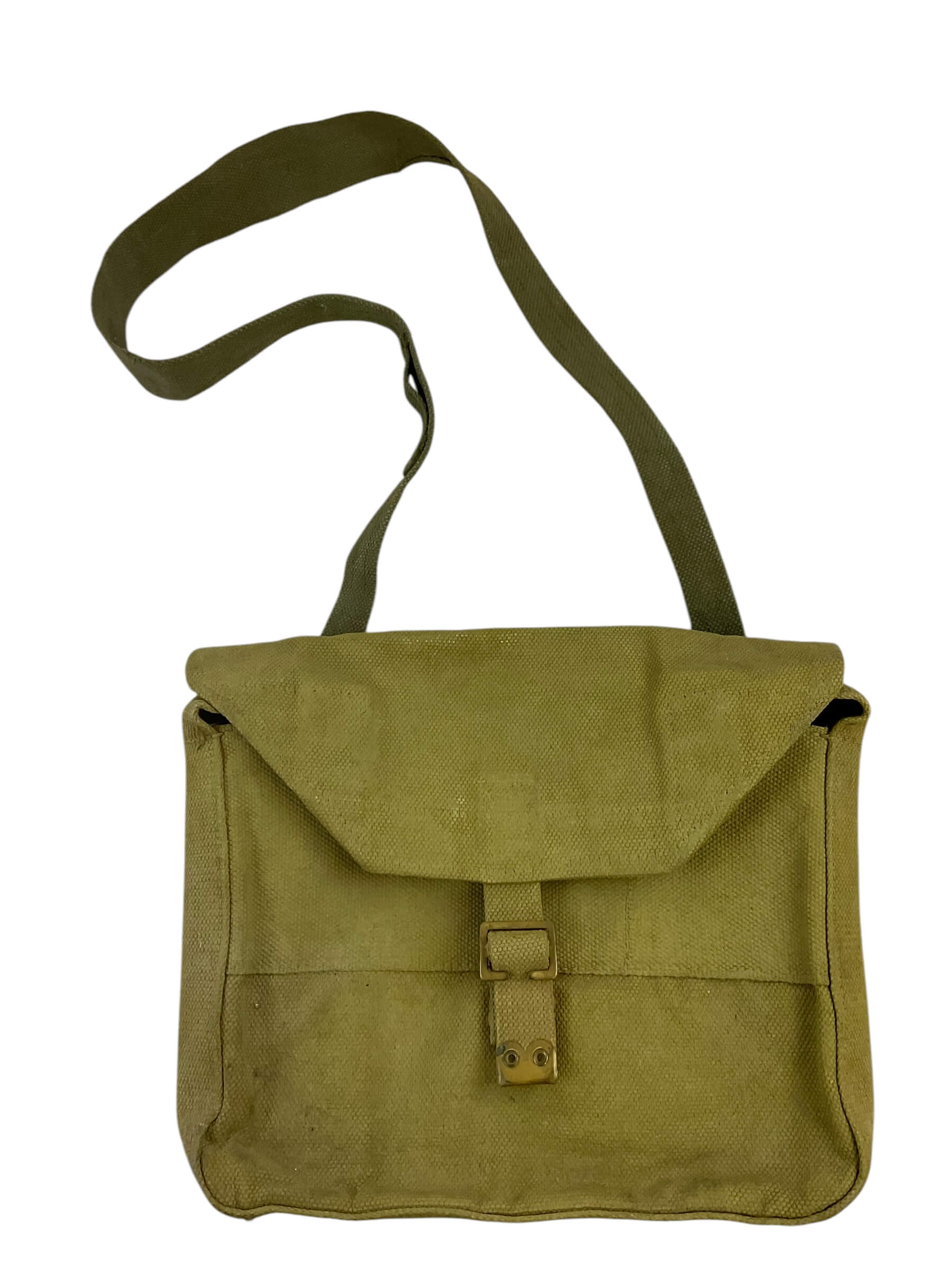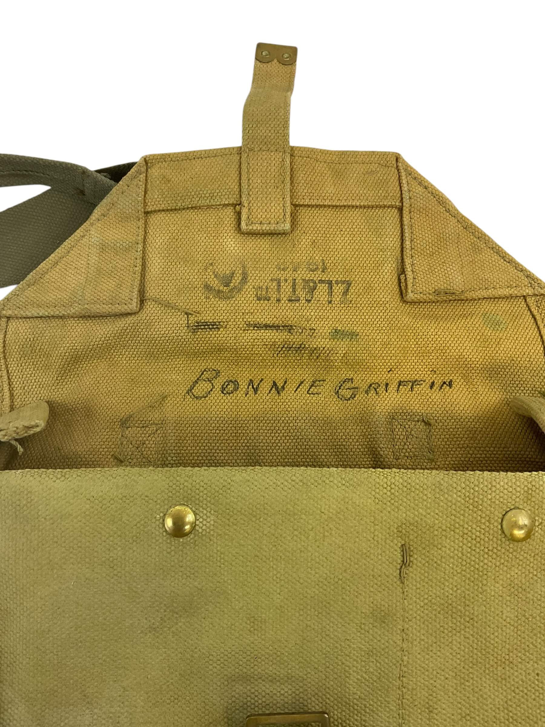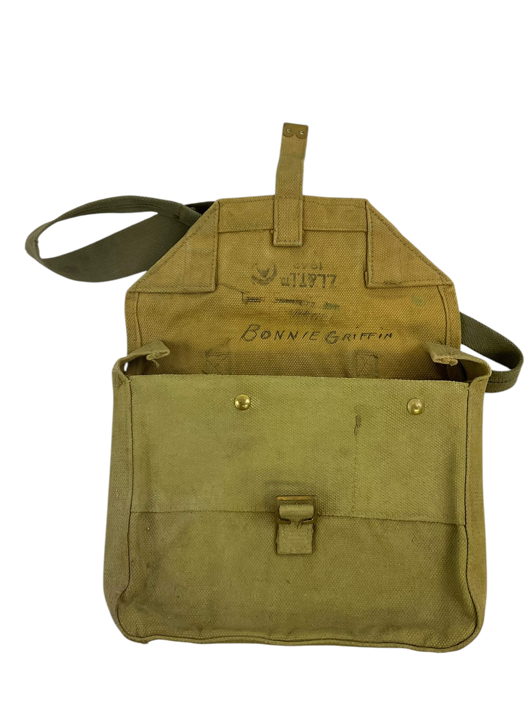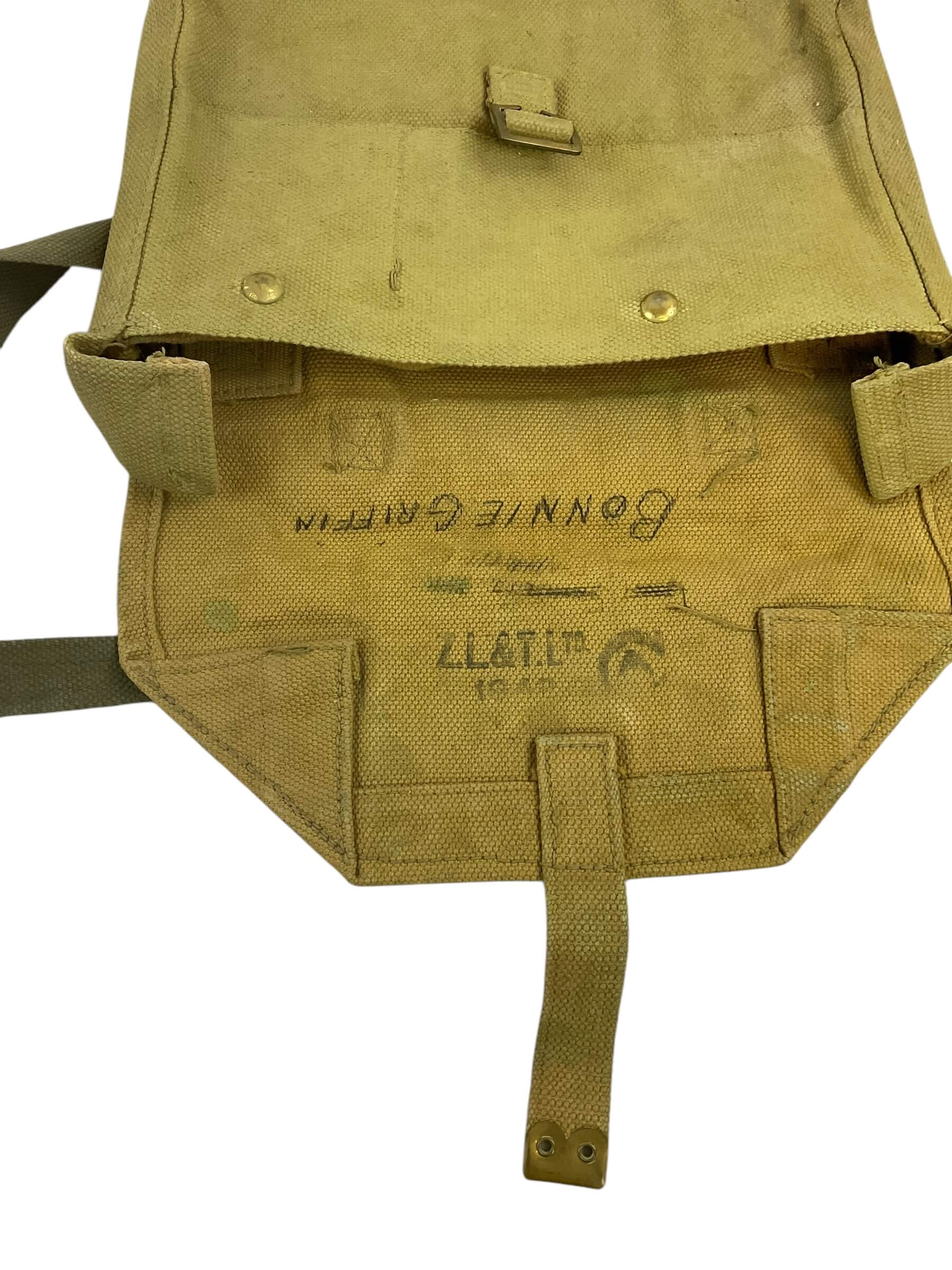 This artifact is a rare and historically significant WW2 Canadian P37 Officer’s Satchel, dated 1942. Crafted from robust, military-grade canvas, the satchel is a testament to the durable equipment used by Canadian officers during the Second World War. Its authentic design includes an adjustable strap, sturdy metal buckles, and multiple compartments for efficient storage. The satchel is marked with the original 1942 date stamp, establishing its authenticity and adding to its historical value. Despite its age, the satchel has been well-preserved, maintaining its original olive-green hue and robust structure. This piece offers a tangible connection to the past, making it an ideal acquisition for collectors, historians, or anyone with a keen interest in military memorabilia. Its rich history and enduring craftsmanship make the WW2 Canadian P37 Officer’s Satchel not just a collectible, but a symbol of Canada’s wartime heritage.