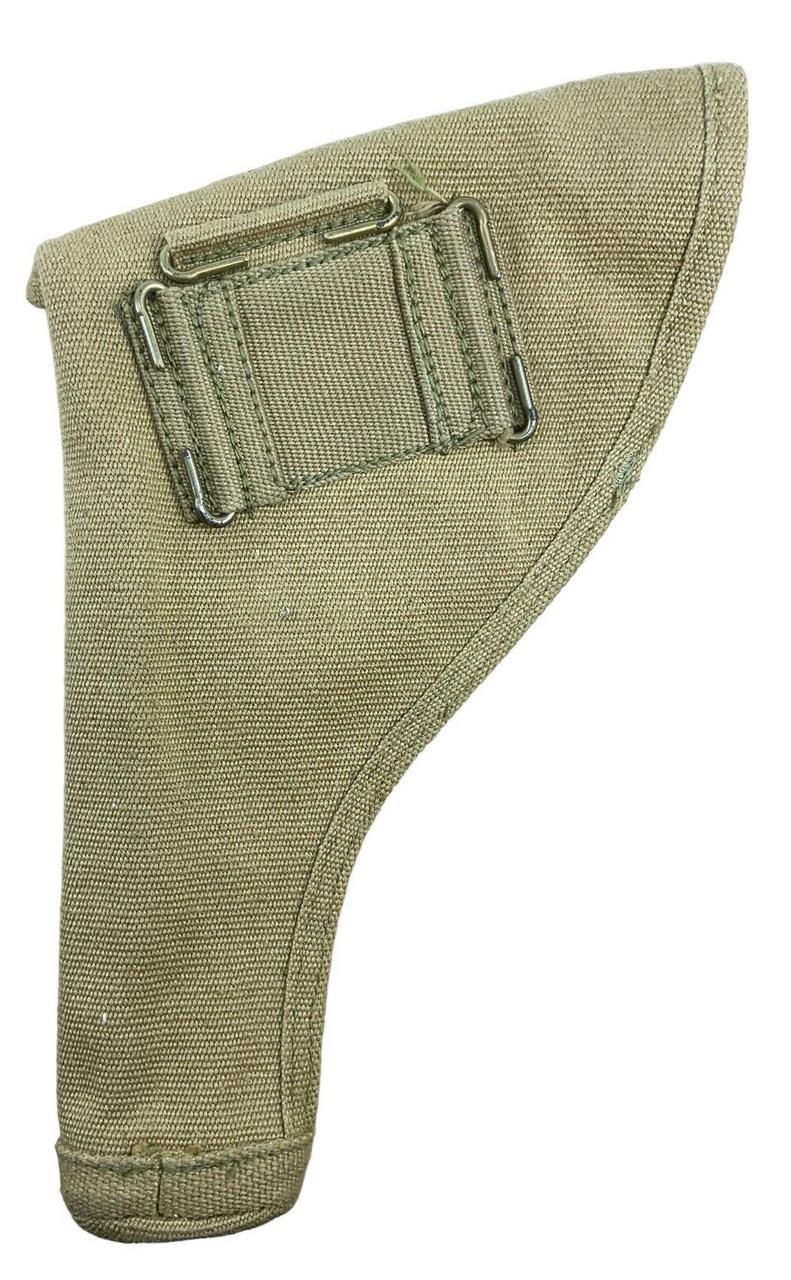 The WW2 Canadian P37 Web Holster, dated 1942, is a remarkable piece of military history, reflecting the ingenuity and resourcefulness of the WWII era. Crafted from durable webbing material, this holster was designed for Canadian forces and is part of the Pattern 1937 (P37) series of equipment, which became standard issue during the war. The web holster not only securely holds a standard-issue service pistol but also exemplifies the practical and efficient wartime design principles. Stamped with a 1942 date, it carries the authenticity and historical significance of having been produced during a critical period of World War II. Ideal for collectors, historians, or re-enactors, this holster provides a tangible connection to the daily lives of Canadian soldiers who served with distinction. Its robust construction and vintage appeal make it a valuable and enduring artifact from the Second World War.