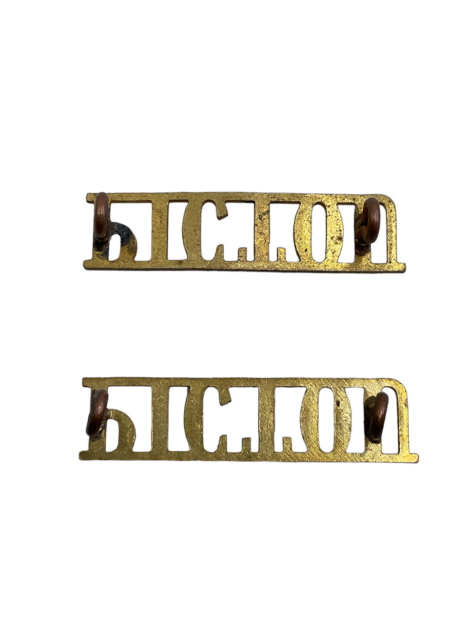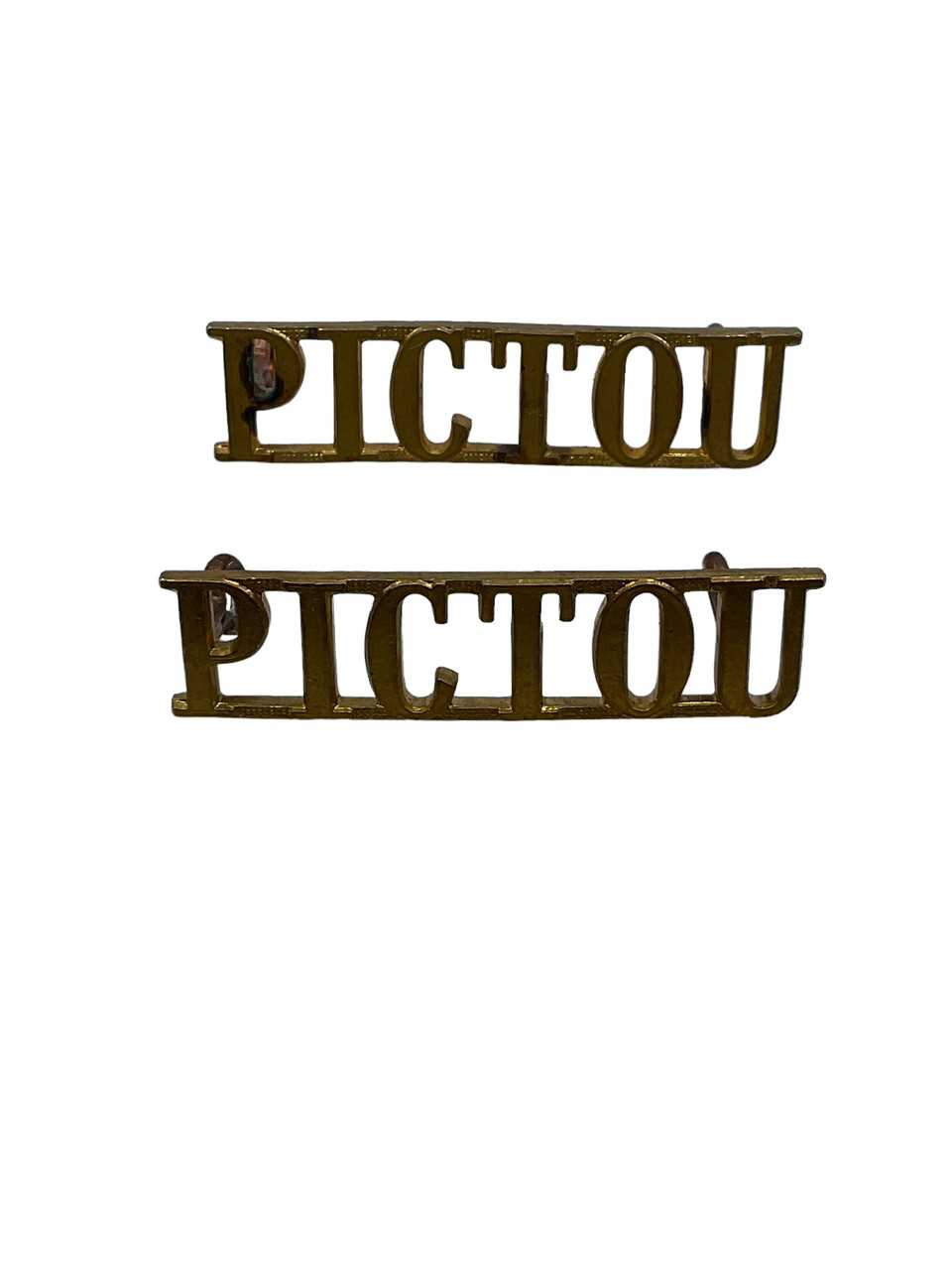 WW2 Canadian Pictou Highlanders Brass Shoulder Titles Insignia Pair