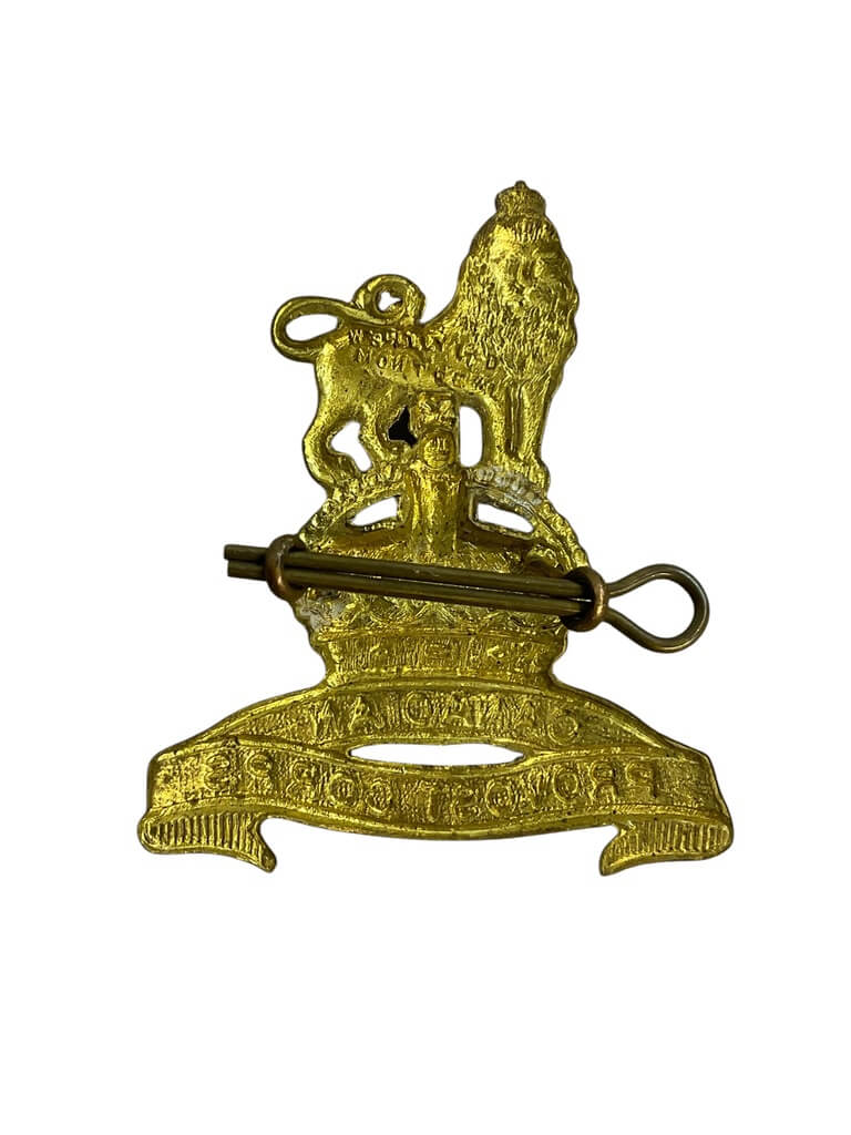 The WW2 Canadian Provost Corps Cap Badge is a distinctive insignia emblematic of the Canadian military police force during the World War II era. Known for their role in maintaining order among Canadian troops, the Provost Corps were the epitome of discipline. This cap badge is a visual representation of their service, featuring a silver maple leaf, a symbol of Canada, and the phrase ‘PROVOST CORPS CANADA’, proudly declaring their allegiance. The badge also displays a King’s Crown, signifying loyalty to the reigning monarch during the war, King George VI. The badge is crafted from brass, ensuring durability and longevity. This notable piece of history is not only a collector’s item for military enthusiasts but also a symbol of the Canadian commitment to peacekeeping and order during one of the world’s most tumultuous periods.
