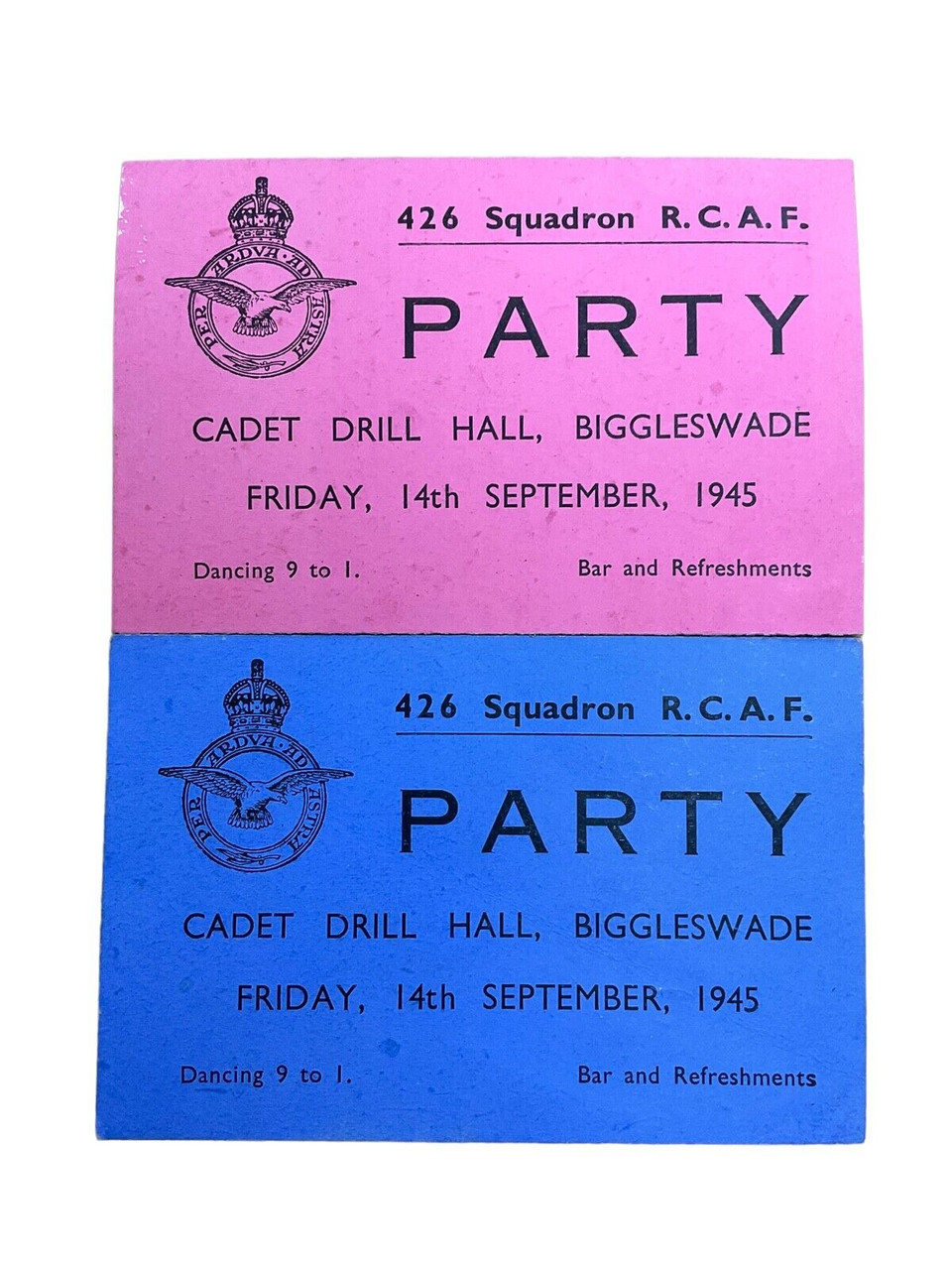 WW2 Canadian RCAF 426 Squadron Biggleswade Drill Hall Party Ticket x 2