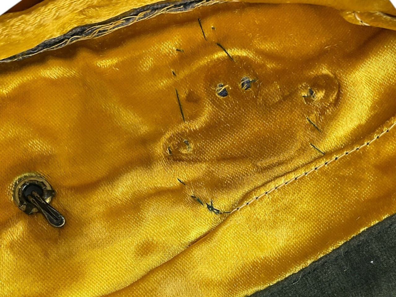 This vintage WW2 Canadian RCAF Air Vice Marshalls Wedge Cap is an exceptional piece of military history, sized at 7 1/4. Worn by high-ranking officers during the Second World War, this cap showcases the distinguished elegance and tradition of the Royal Canadian Air Force. The hat is unnamed, adding a touch of mystery and countless possible stories to its provenance. It is crafted from quality materials typical of the era, featuring the iconic RCAF insignia and intricate detailing that speaks to its authentic use by an Air Vice Marshal. Ideal for collectors of military memorabilia, historians, or enthusiasts of Canadian aviation heritage, this cap is not just a piece of headgear but a tangible connection to the brave individuals who played crucial roles in WWII. Preserve a piece of history with this unique and storied RCAF wedge cap.