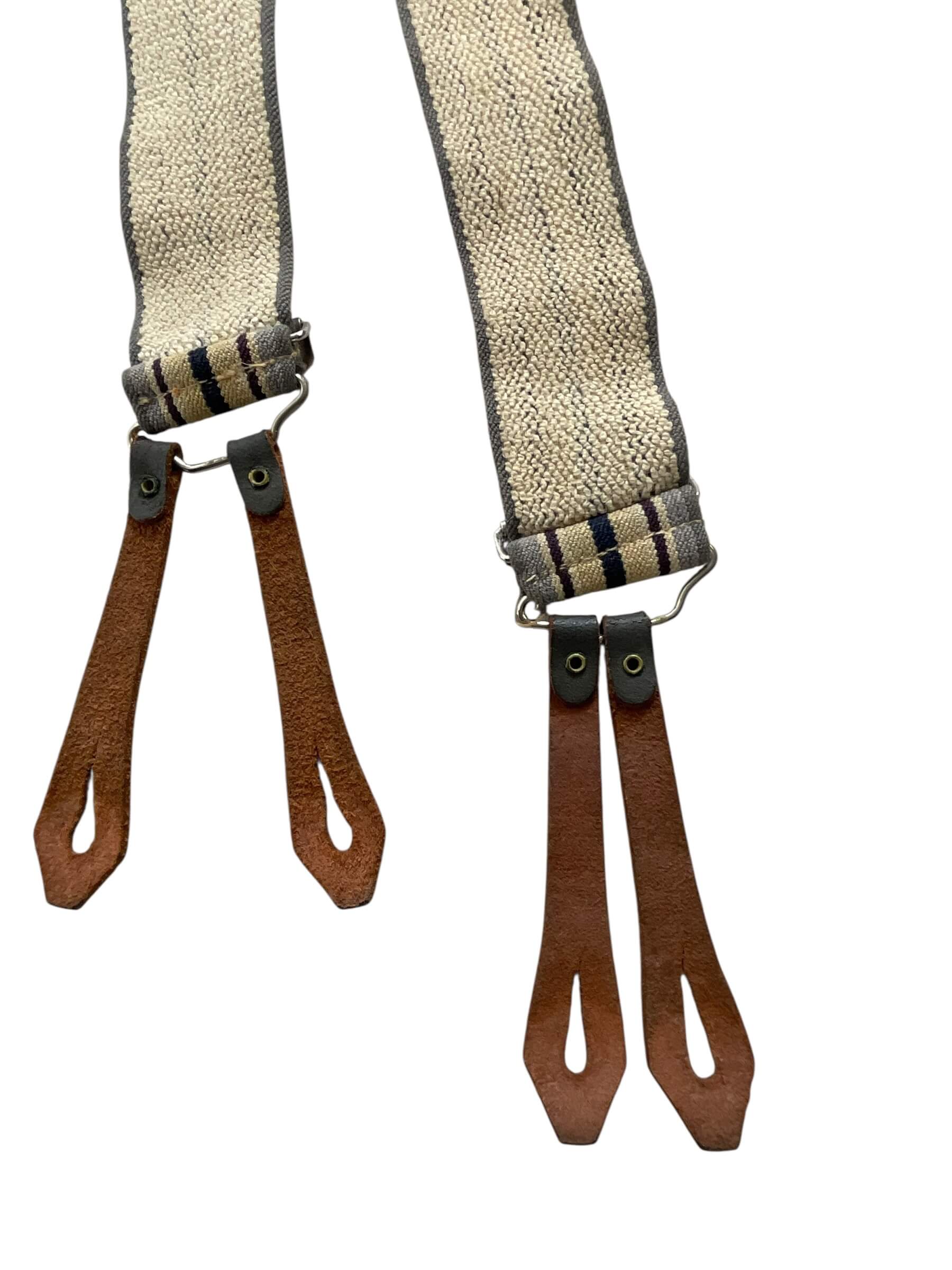 These WW2 Canadian RCAF Blue Suspenders are a remarkable piece of military history. Worn by members of the Royal Canadian Air Force during the Second World War, these suspenders bear the distinct RCAF blue hue, a symbol of valor and duty. Crafted with durability and functionality in mind, they were designed to endure the harsh conditions of war. These suspenders are not just a clothing item but a tribute to the brave Canadian airmen who fought for freedom. They offer an intriguing insight into the uniforms of the era, showcasing the practicality and simplicity of war attire. The WW2 Canadian RCAF Blue Suspenders are a fascinating collectible, perfect for history enthusiasts, military artifact collectors, or anyone interested in the stories of the past. Their iconic blue color and sturdy construction make them a unique piece that represents an essential part of Canada’s wartime history.