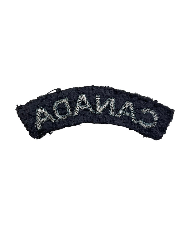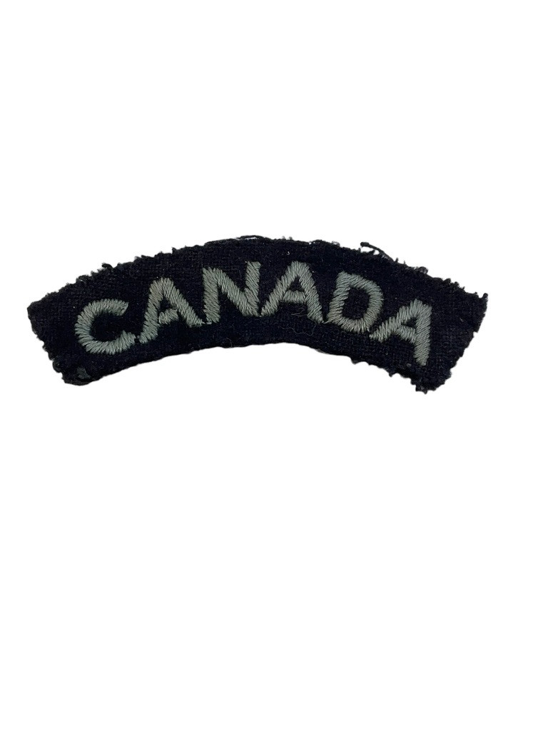 This item is a vintage World War II-era nationality title insignia, specifically made for the Royal Canadian Air Force (RCAF) other ranks. Crafted in Britain, this single insignia piece bears the proudly embroidered word “CANADA,” signifying the wearer’s national affiliation. Such insignias were an essential part of military uniforms, helping to identify the service member’s country of origin within the larger Allied forces. This artifact represents a piece of history, reflecting the collaboration between Canadian and British forces during the war. The meticulous craftsmanship and the historical significance of the insignia make it a valuable item for collectors and historians alike, offering a tangible connection to the brave men and women who served in the RCAF during one of the most significant conflicts in modern history.