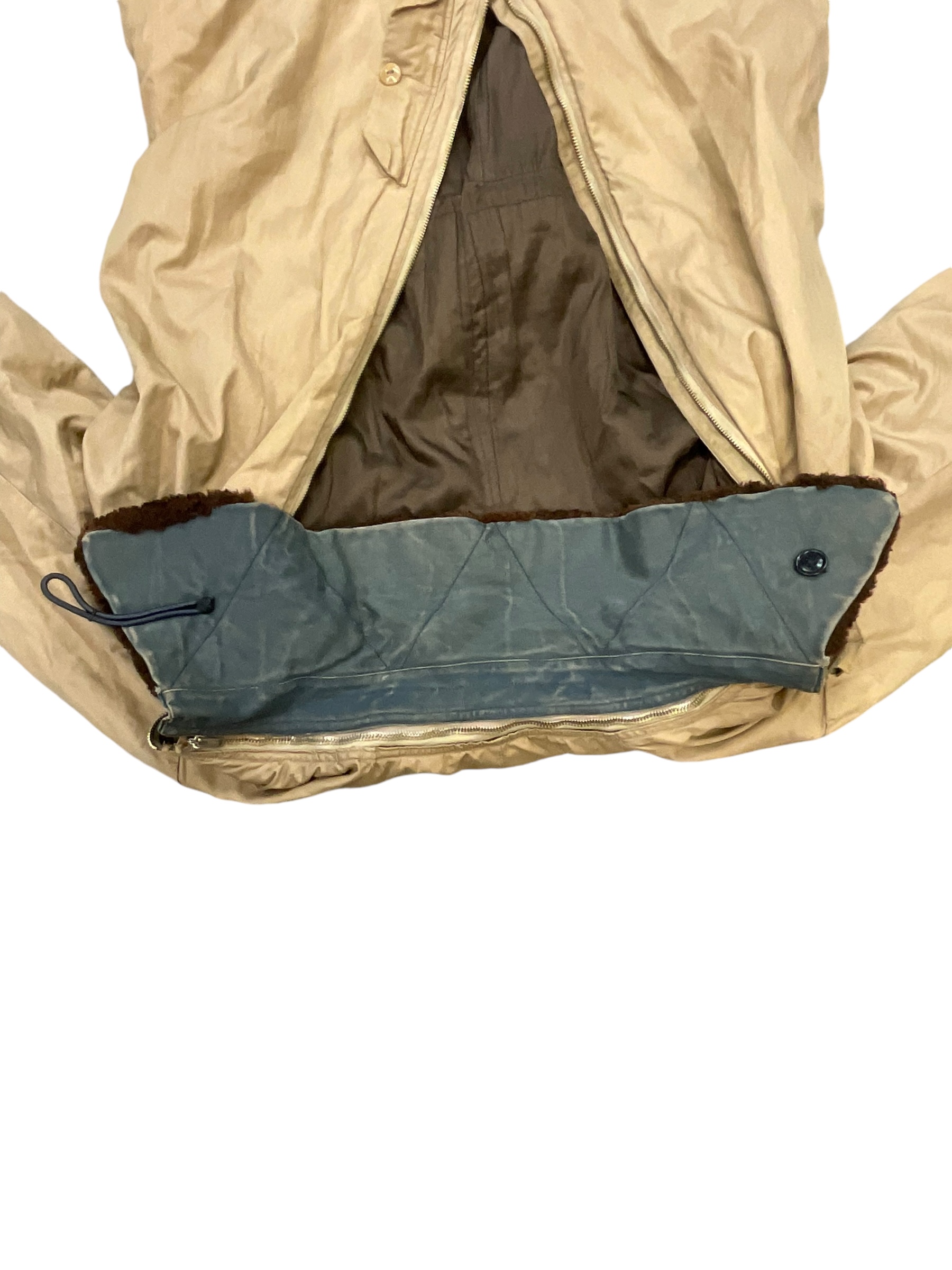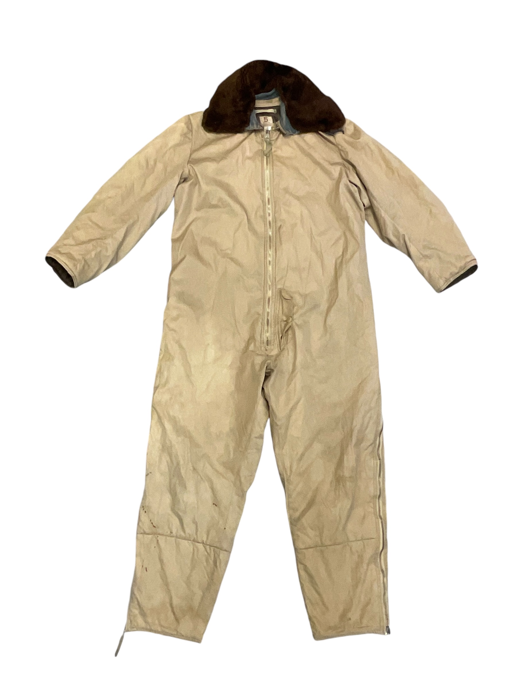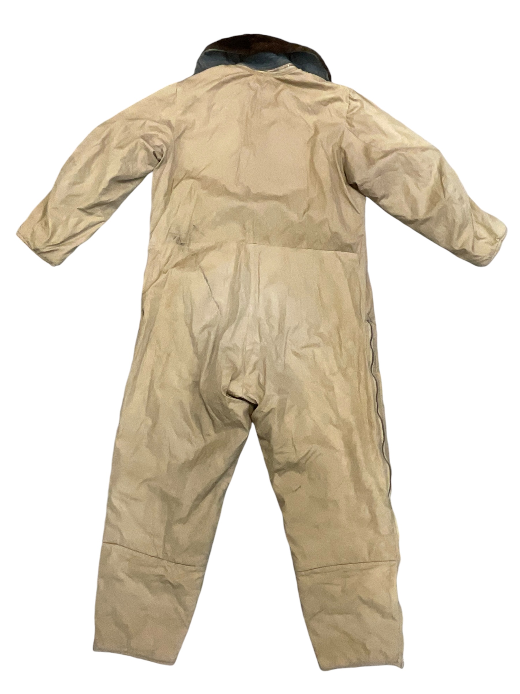 The WW2 Canadian RCAF Deacon Flying Suit is an important piece of military and aviation history. Designed for the Royal Canadian Air Force (RCAF) during World War II, the suit was key in protecting pilots from extreme temperatures and conditions. The Deacon Flying Suit was made with insulated, high-quality materials to withstand the freezing temperatures at high altitudes. It featured multiple pockets for carrying vital equipment, and adjustable straps for a tailored fit. The design and construction of the suit showcase the technological advancements made during this pivotal time in history. This iconic suit symbolizes the bravery of the pilots who served in World War II, making it a significant collectible for history enthusiasts and military collectors alike.