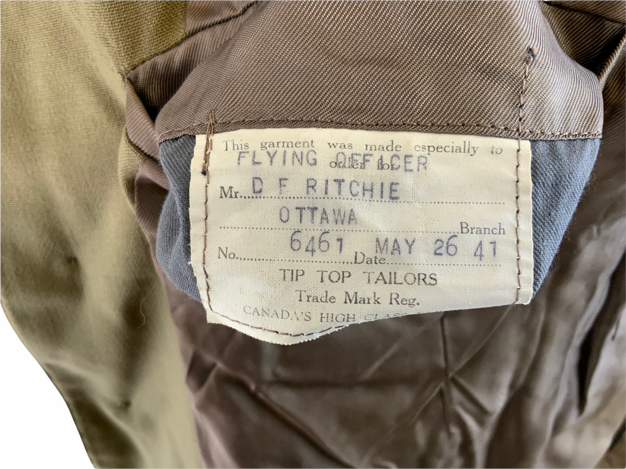 WW2 Canadian RCAF Flying Officer Named 1941 Dated TW Jacket 40 Chest