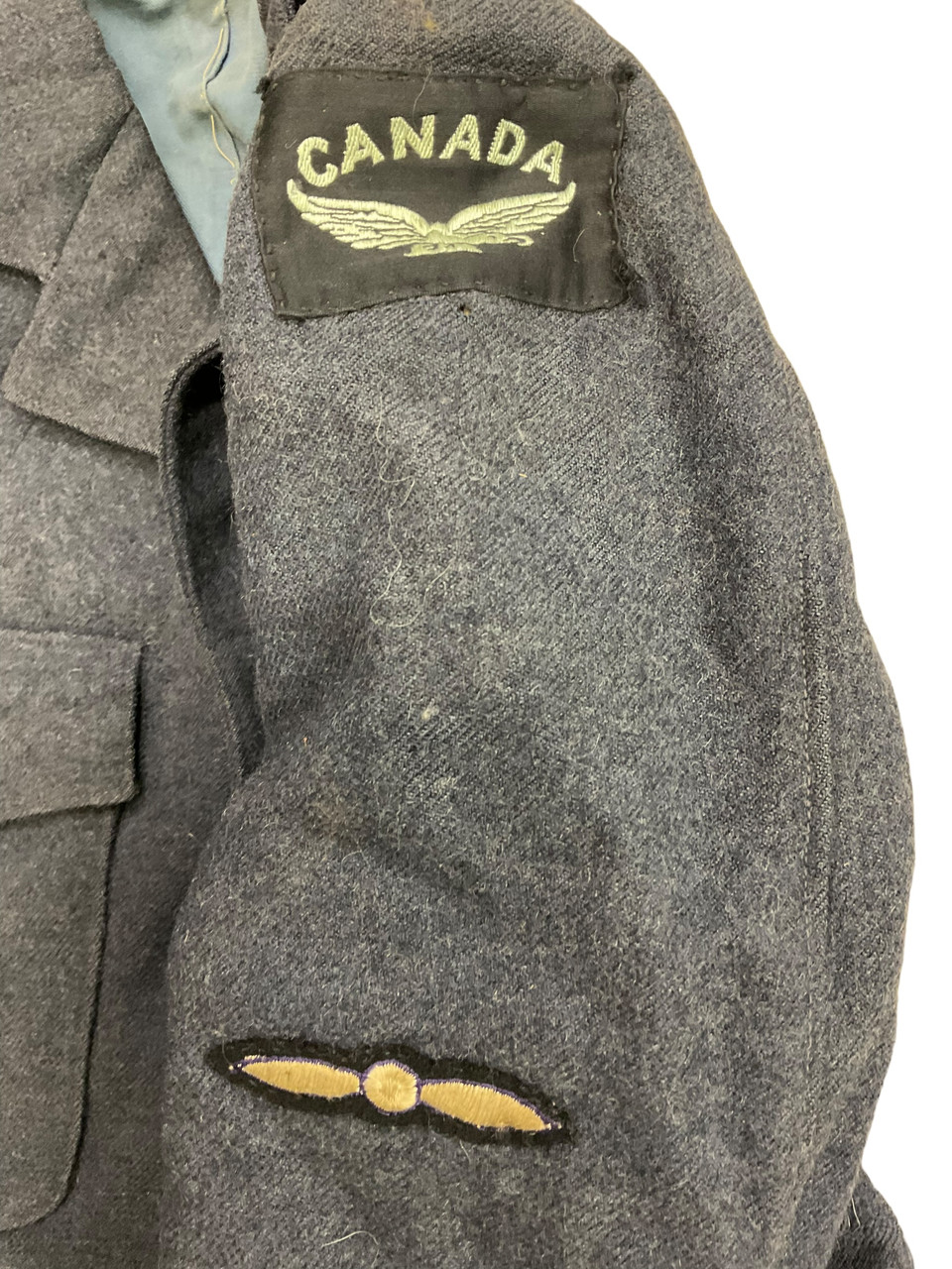 This remarkable WW2 Canadian RCAF LAC Leading Aircraftsman Signals Named 4 Pocket Jacket Tunic is a distinguished piece of military history. Crafted with meticulous attention to detail, the tunic highlights the valor and dedication of a brave Leading Aircraftsman in the Royal Canadian Air Force during World War II. The tunic features four spacious pockets, each expertly sewn to provide both functionality and style. This historically significant uniform is named, making it a rare and personalized artifact. The signals designation indicates the wearer’s crucial role in military communications, a vital component in wartime operations. The jacket’s condition and craftsmanship offer a poignant glimpse into the past, making it an invaluable collectible for military enthusiasts and historians alike. This authentic piece of Canadian military heritage embodies honor, tradition, and the unwavering spirit of the airman who once wore it.