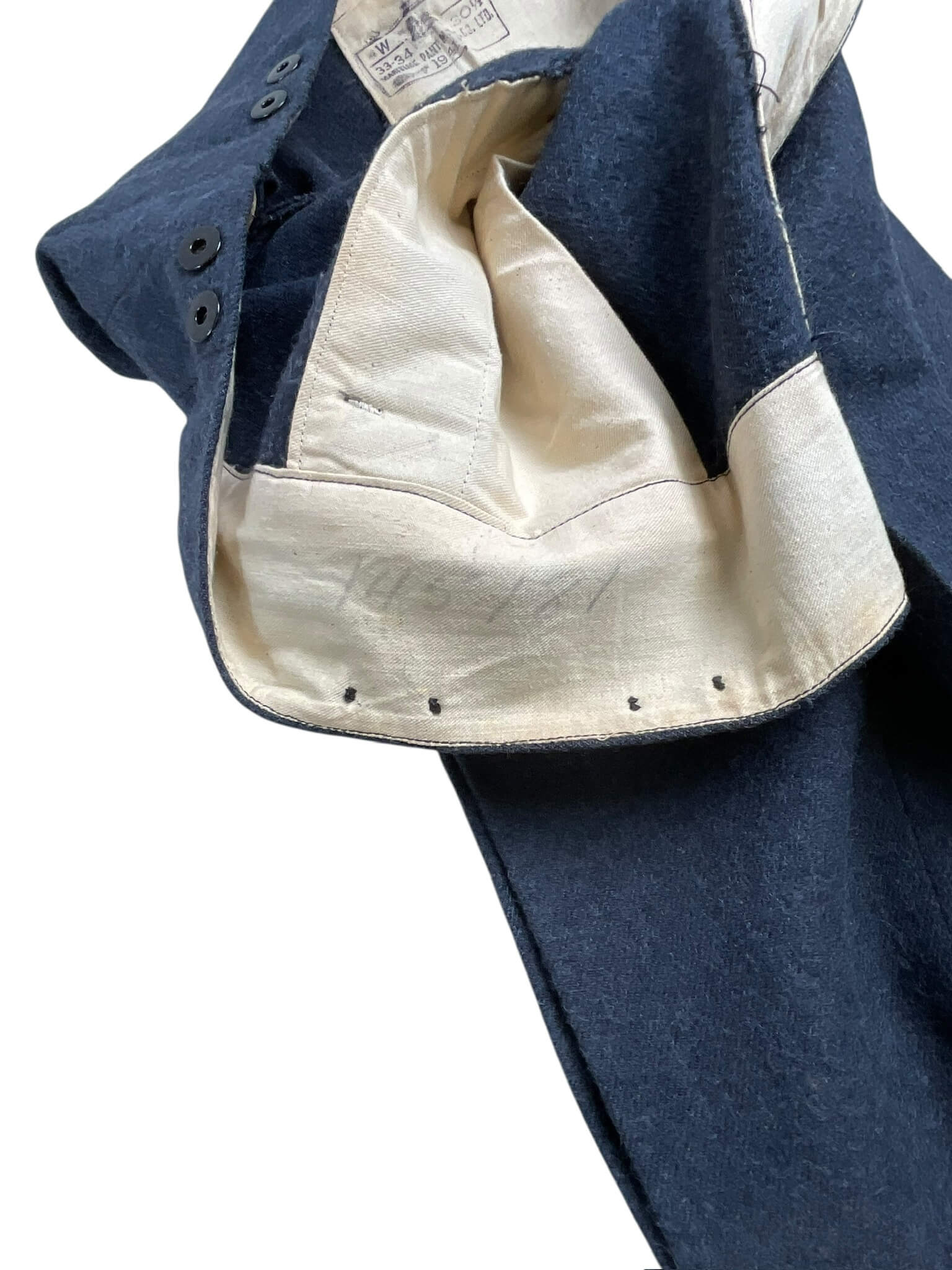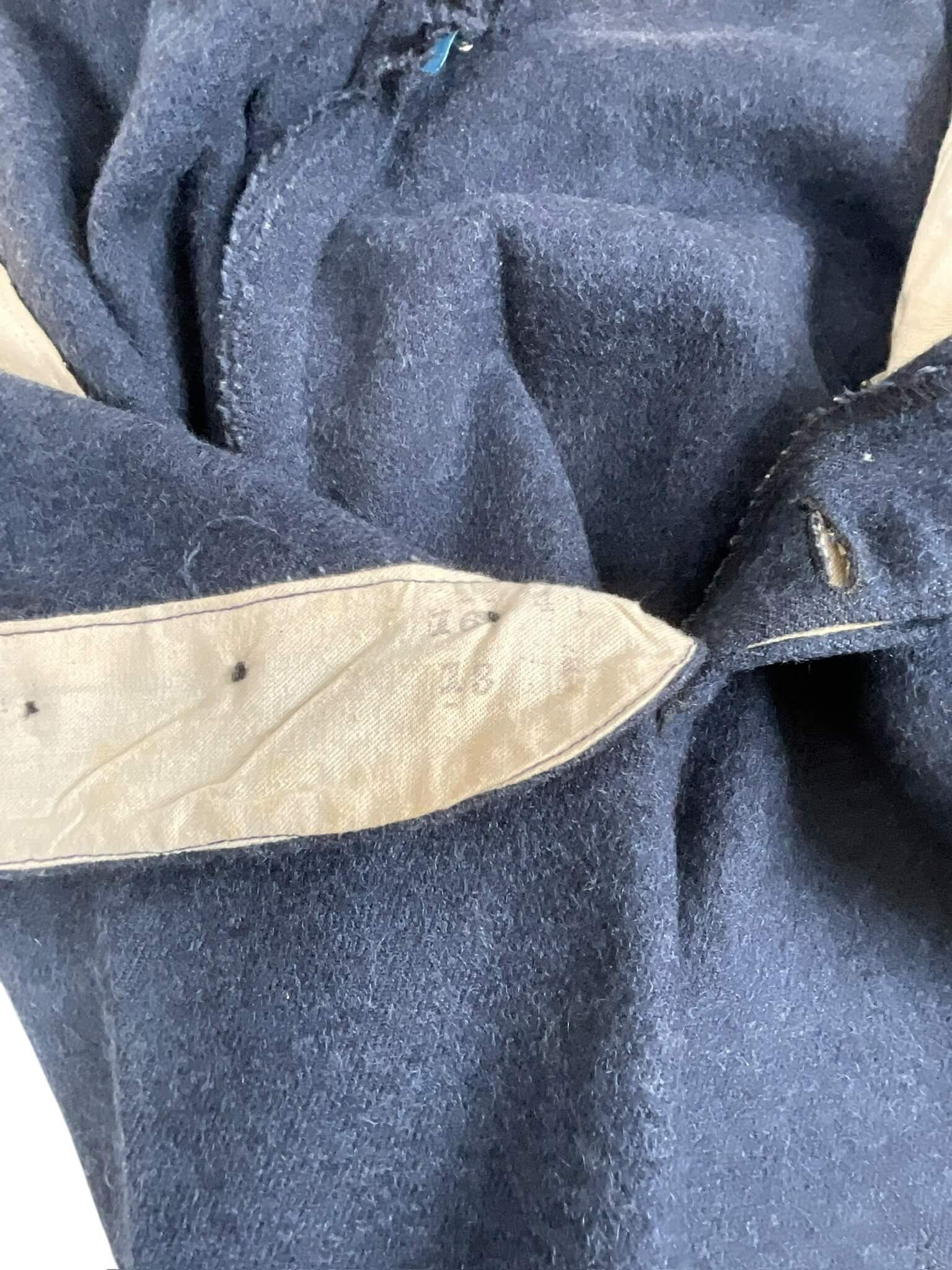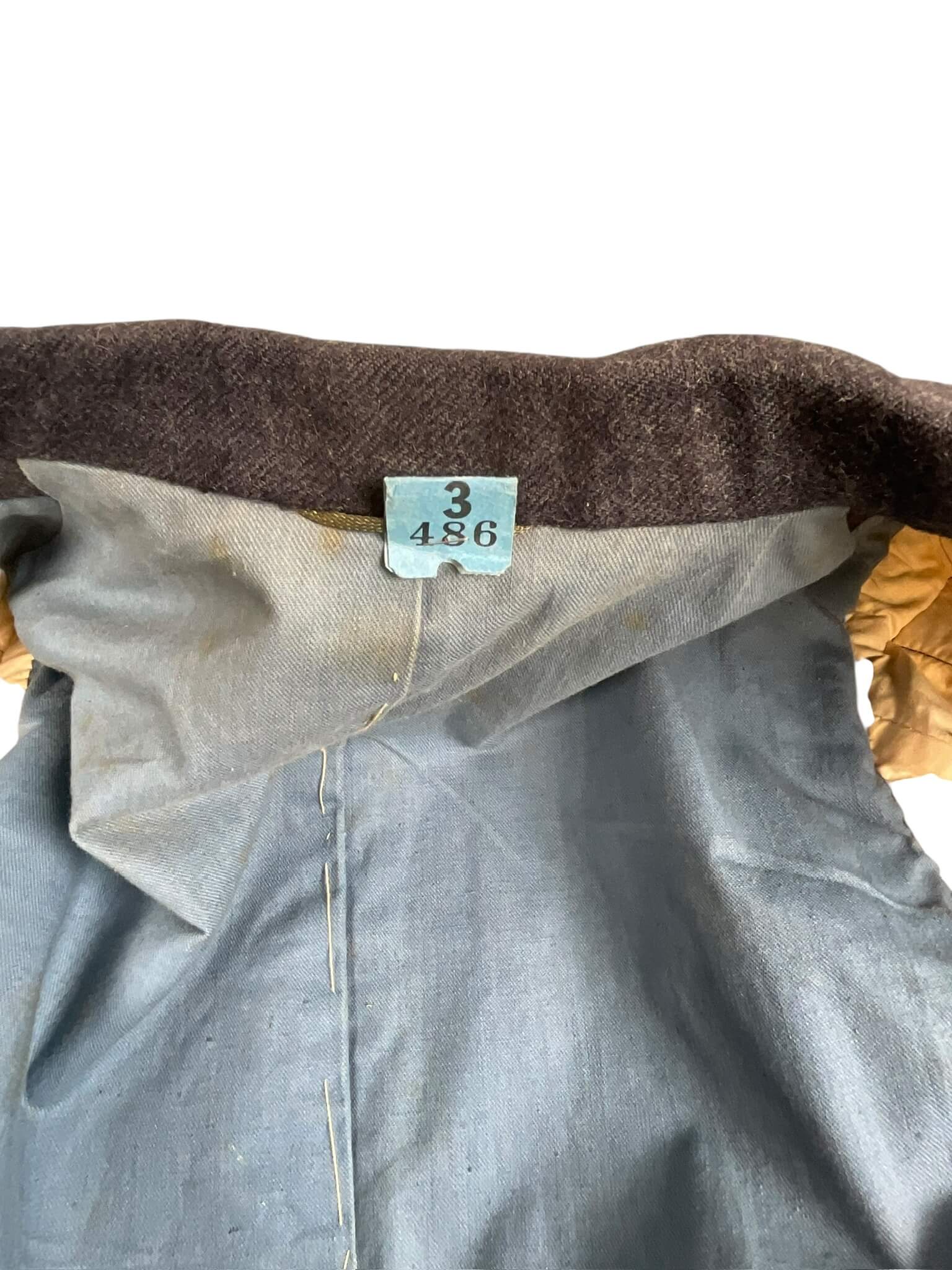 This WWII Canadian RCAF LAC (Leading Aircraftman) Service Dress Jacket with Trousers is a unique piece of military history. Dated from 1942, this uniform is a relic of the Royal Canadian Air Force during the height of World War II. The uniform set includes a finely tailored service dress jacket, complete with authentic insignia and a pair of matching trousers. The jacket, in classic military green, features two chest pockets and two side pockets, with a traditional four-button front. The trousers are also in matching military green and are elegantly designed with a straight cut. The uniform shows signs of use, but is incredibly well preserved considering its age. This RCAF LAC uniform is not only a collectible item but also a symbol of the bravery and commitment of the Canadian servicemen during the tumultuous times of the Second World War.