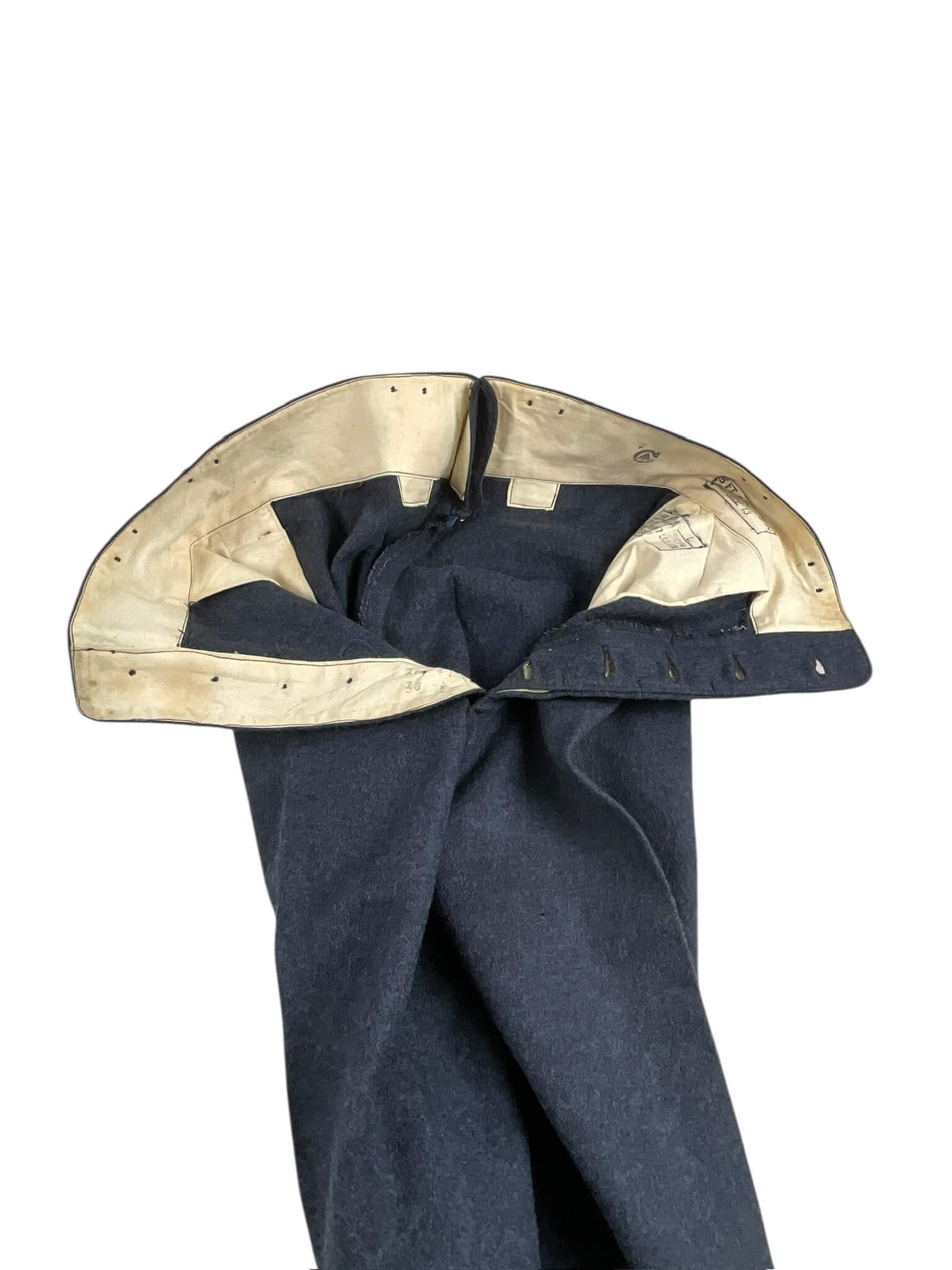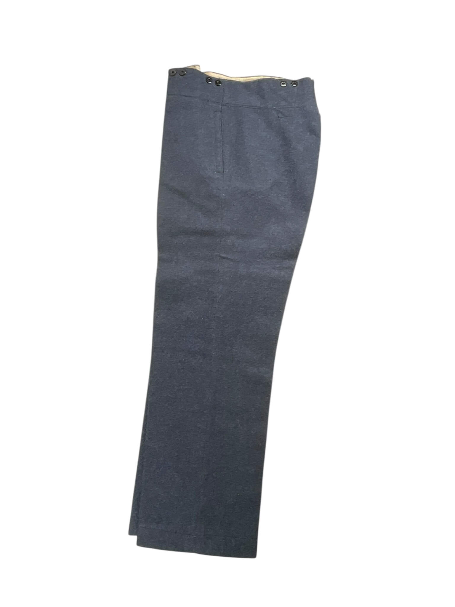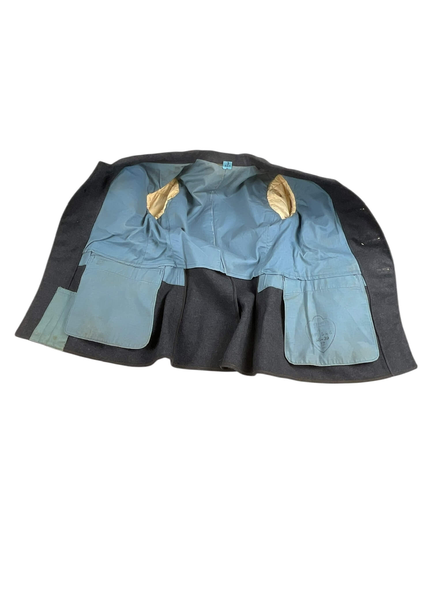 This WWII Canadian RCAF LAC (Leading Aircraftman) Service Dress Jacket with Trousers is a unique piece of military history. Dated from 1942, this uniform is a relic of the Royal Canadian Air Force during the height of World War II. The uniform set includes a finely tailored service dress jacket, complete with authentic insignia and a pair of matching trousers. The jacket, in classic military green, features two chest pockets and two side pockets, with a traditional four-button front. The trousers are also in matching military green and are elegantly designed with a straight cut. The uniform shows signs of use, but is incredibly well preserved considering its age. This RCAF LAC uniform is not only a collectible item but also a symbol of the bravery and commitment of the Canadian servicemen during the tumultuous times of the Second World War.