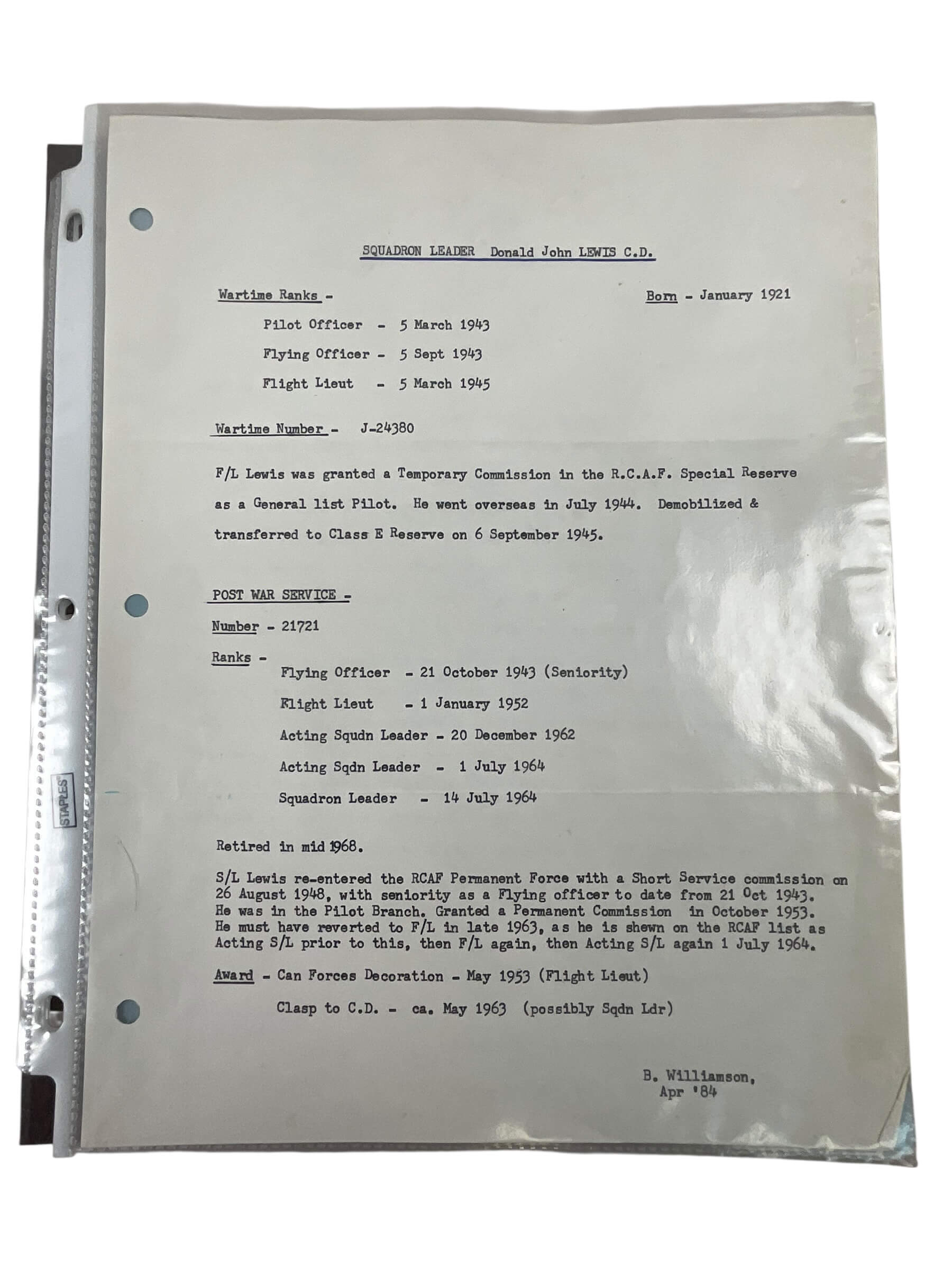 WW2 Canadian RCAF Log Book and Medal Group Squadron Leader D.J. Lewis