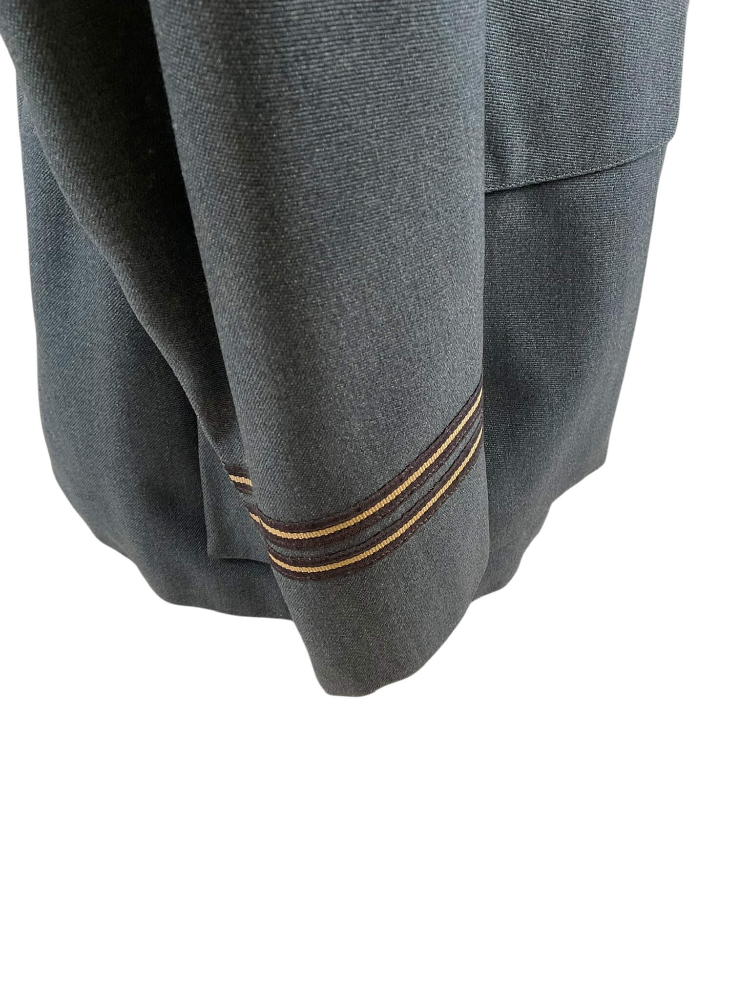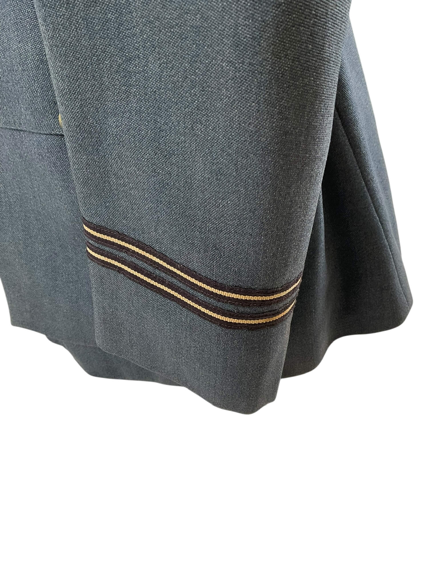 This WW2 Canadian RCAF Medical Officers Service Dress Jacket with Trousers is an exceptional piece of history, reflecting the valour and discipline of the Royal Canadian Air Force. The set includes a service dress jacket and matching trousers, both in pristine condition despite their age. The jacket is decorated with distinct medical officer insignia, denoting the wearer’s honorable role. It features intricate detailing, from the RCAF buttons to the well-preserved stitching. The trousers complement the jacket perfectly, bearing the same high-quality craftsmanship. Both pieces are crafted from a hard-wearing fabric, designed to withstand rigorous use. This set is not just a uniform, but a symbol of Canadian wartime history, making it an invaluable acquisition for any military history enthusiast or collector. It is an ode to the brave medical officers who served during World War II, embodying their dedication and sacrifice.