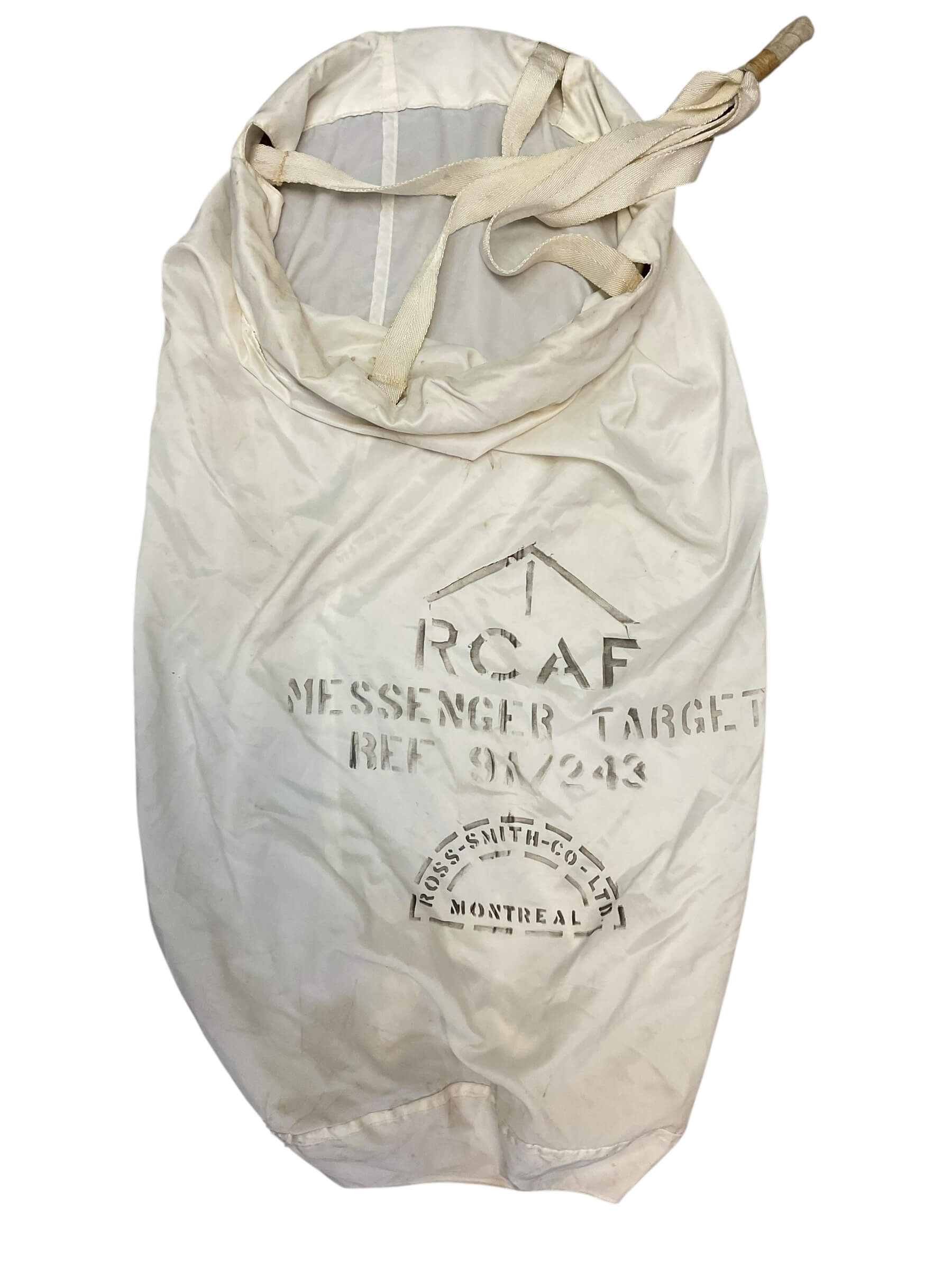 The WW2 Canadian RCAF Messenger Target Bag is a captivating piece of history, hailing from the period of the Second World War. This item, used by the Royal Canadian Air Force (RCAF), was an essential tool in the communication and operational routines of the time. The bag was employed to transport significant documents, maps, and messages across various locations. The durable construction of the bag ensured the safety and confidentiality of its contents in all weather conditions. Its design reflects the practical and utilitarian style of military gear from this era. This messenger target bag is not just a functional piece, but a tangible link to the past that highlights the resilience and dedication of the RCAF during one of the most challenging periods in global history. It’s a must-have for any history enthusiast or military memorabilia collector.