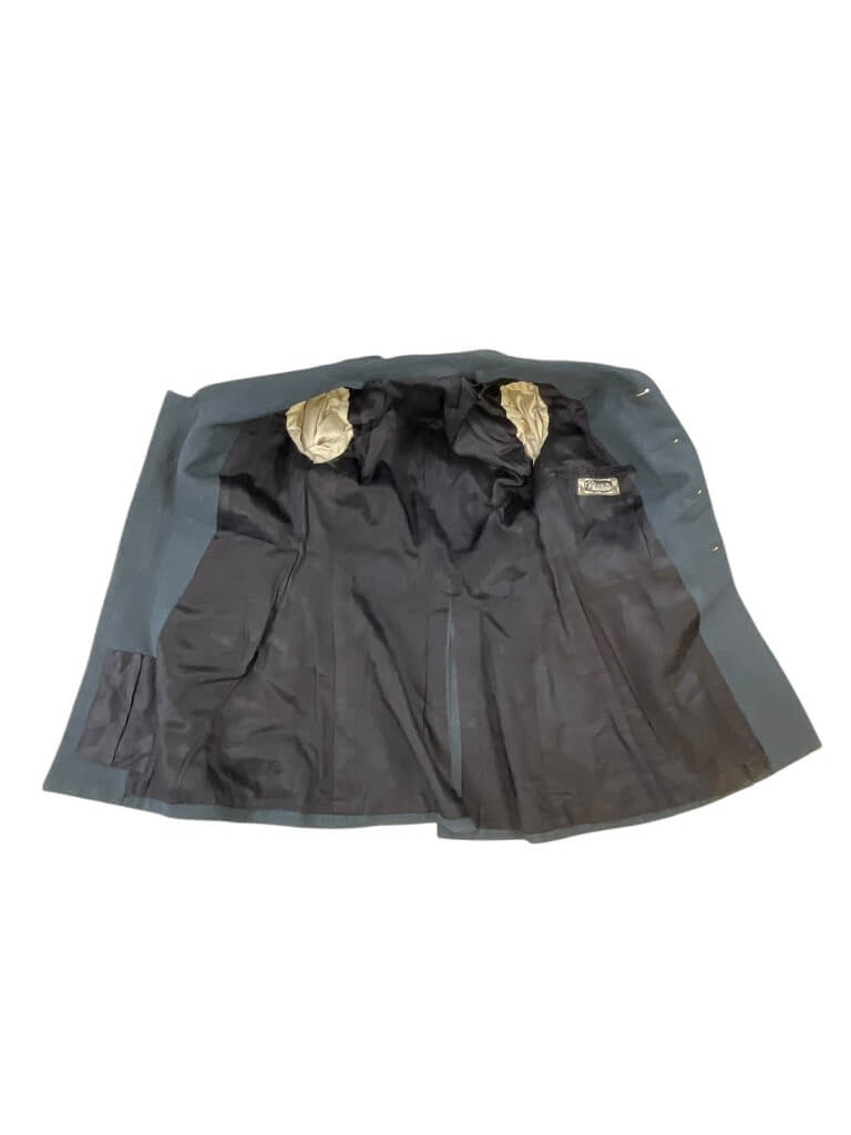 This item is an authentic WW2 RCAF (Royal Canadian Air Force) Navigator Officer’s service dress jacket. It belonged to an esteemed DFC (Distinguished Flying Cross) winner, making it a rare and highly sought-after piece of military history. The jacket, meticulously preserved, showcases the iconic blue-grey wool fabric synonymous with the RCAF uniforms of the era. It features the original Navigator Officer’s winged badge on the chest and gold braided epaulettes, signifying the rank of the officer. Notably, the DFC ribbon adorns the left chest pocket, symbolizing the recipient’s extraordinary heroism and achievement during aerial flight. This jacket provides an intimate glimpse into the life and service of a Canadian military hero during the tumultuous times of World War II. It is an invaluable artifact for history enthusiasts, military collectors, or anyone interested in the sacrifices made by the brave soldiers of the past.