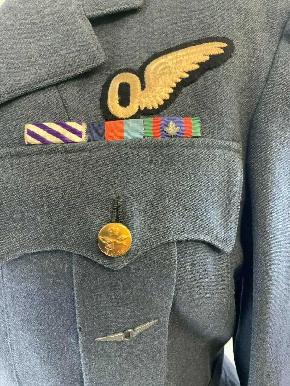 WW2 Canadian RCAF Observer Service Dress Tunics X 2 Named w/ Ops Wing & DFC , 40 Inch chest with height 5’10
