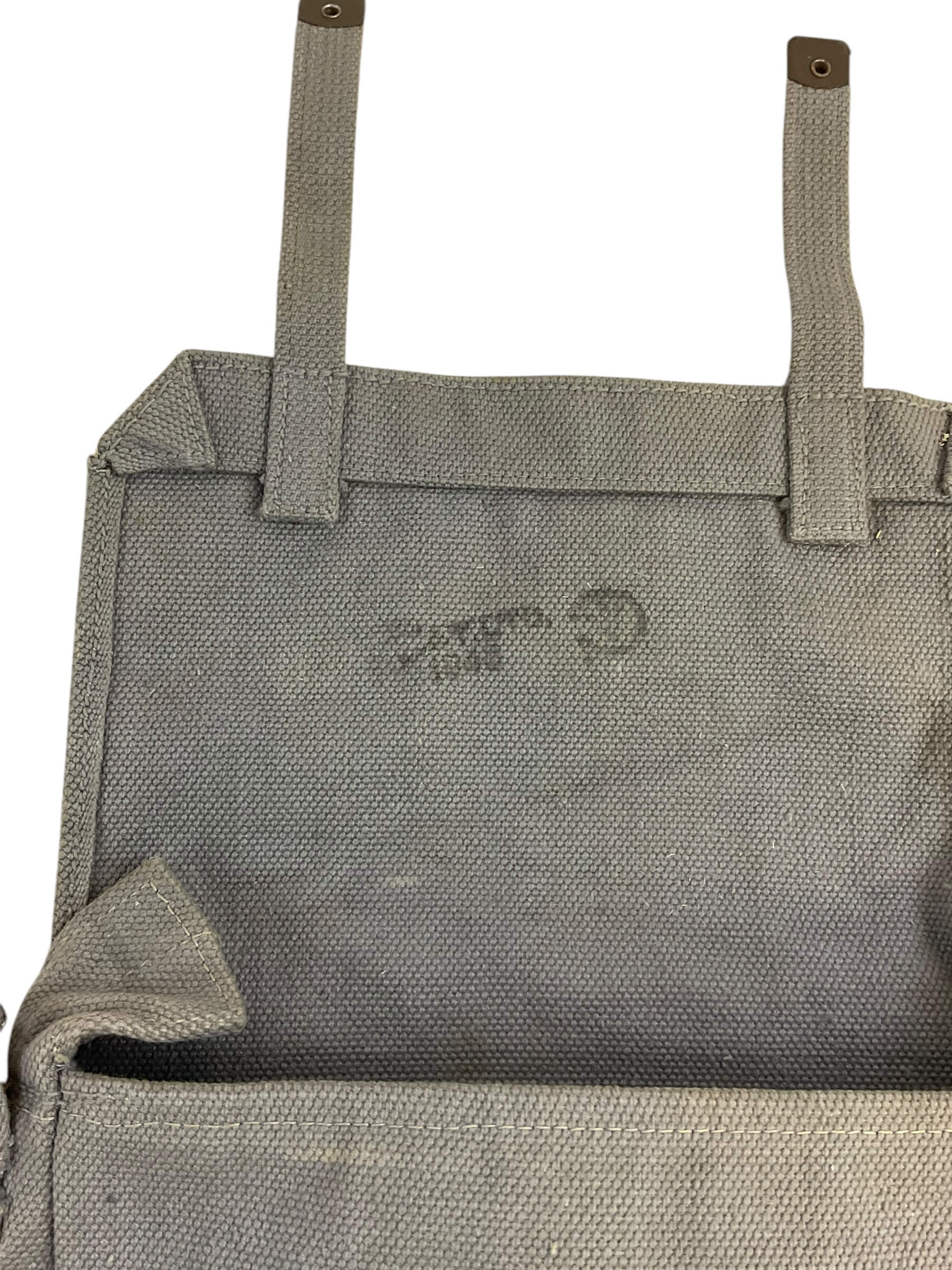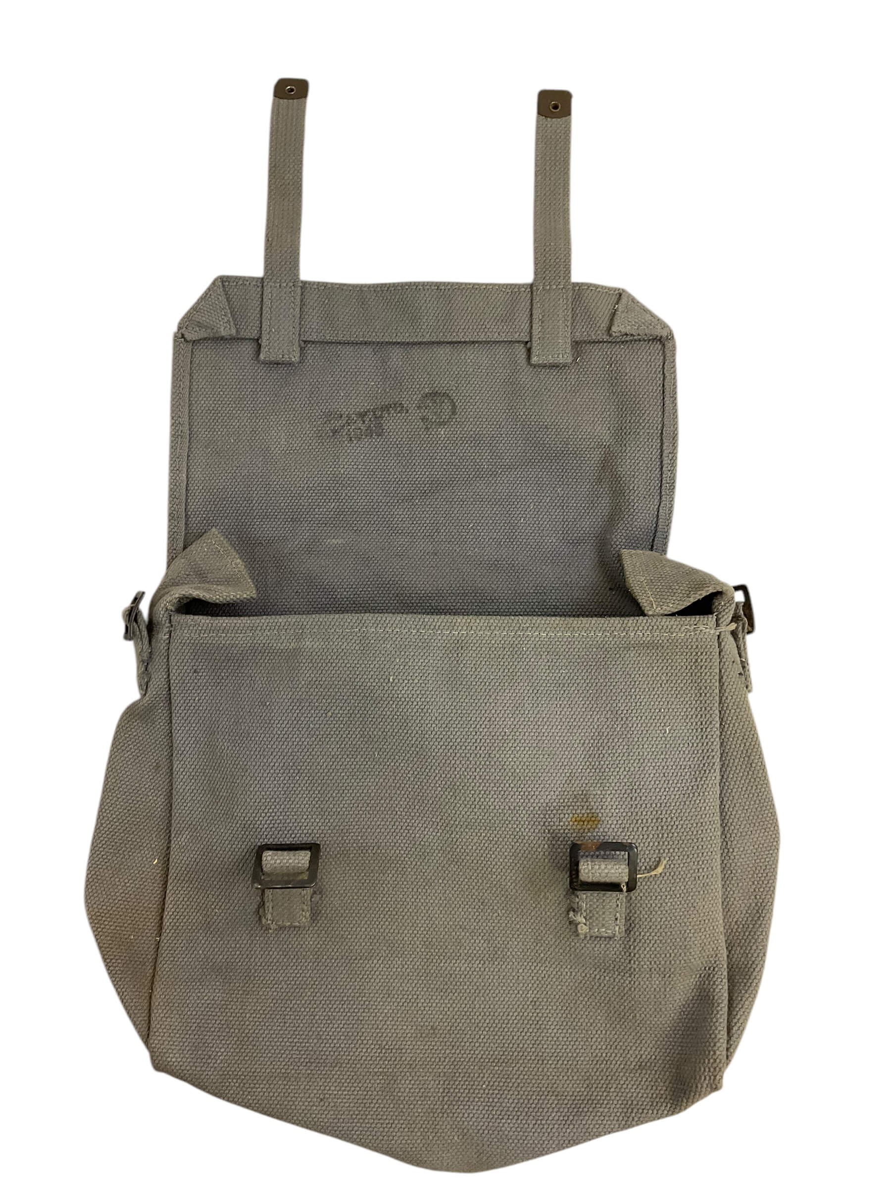 This item is an authentic WW2 Canadian RCAF Pattern 37 Satchel, dated 1943, featuring the distinctive ‘C Broad Arrow’ marking. This marking was used to denote Canadian military property, making this item a valuable collectible for military historians or enthusiasts. The satchel, crafted from sturdy canvas, reflects the design practicality and durability of military equipment during the Second World War. It is part of the Pattern 37, a series of military webbing equipment widely used by the British Commonwealth forces during the war. The Royal Canadian Air Force (RCAF) utilized these satchels to carry their necessary equipment. This particular piece is in good condition, considering its age and historical significance. It serves as a tangible link to the past and the enormous contributions of the RCAF during WW2.