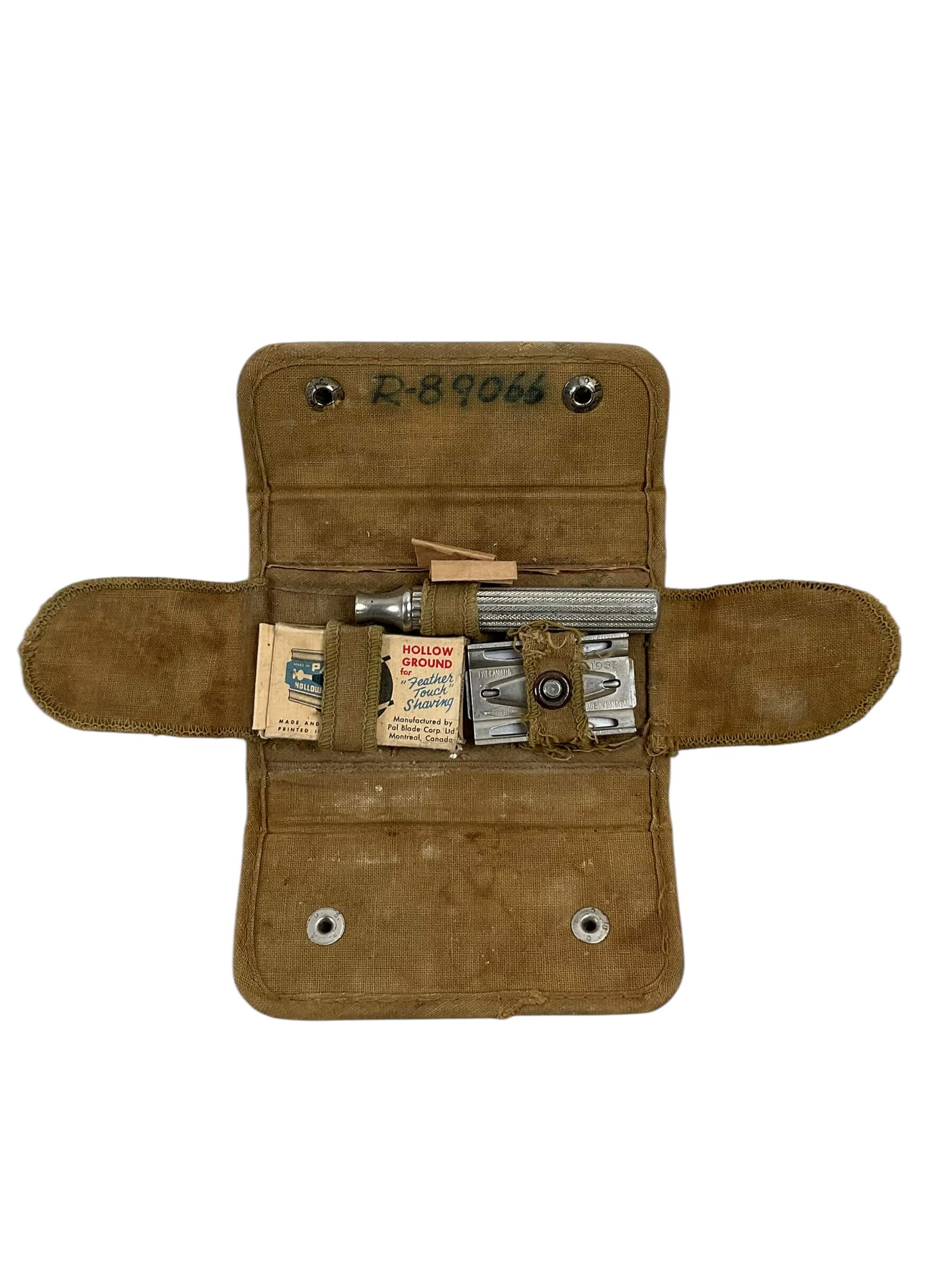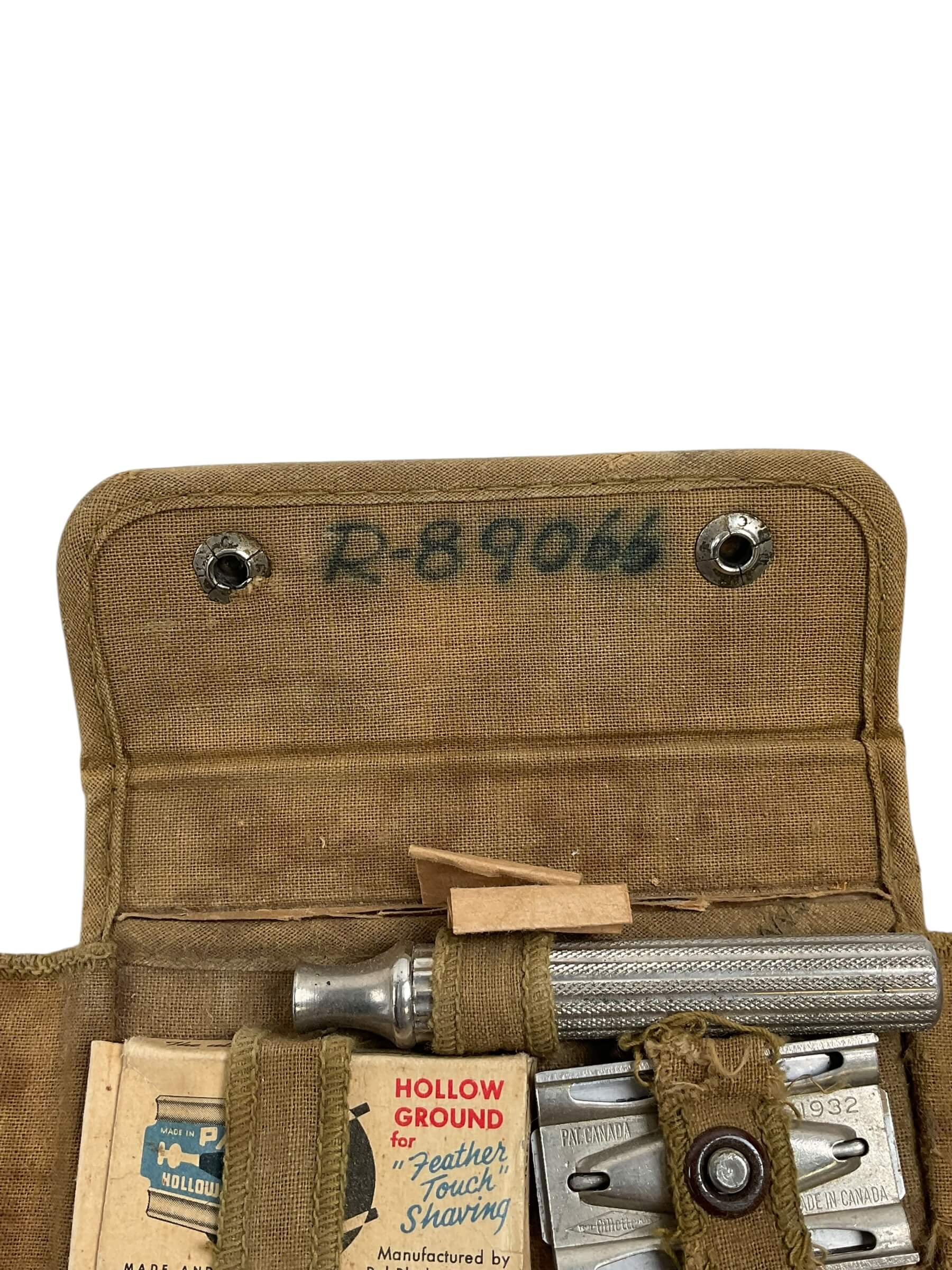 This WW2 Canadian RCAF Shaving Kit C Broad Arrowed Numbered is a rare and unique military memorabilia piece. It belonged to the Royal Canadian Air Force (RCAF) servicemen during the Second World War. The kit is marked with a ‘C’ Broad Arrow, the official mark used by the Canadian government to denote property. This mark also indicates that the kit was produced and issued during wartime. The kit includes various shaving items, all stored in a compact case designed for easy transport. It also features a specific number, adding to its authenticity and historical value. This piece not only represents a piece of personal military equipment but also provides a glimpse into the daily life of a serviceman during those challenging times. Collectors of military memorabilia or history enthusiasts will undoubtedly appreciate this WW2 Canadian RCAF Shaving Kit C Broad Arrowed Numbered.