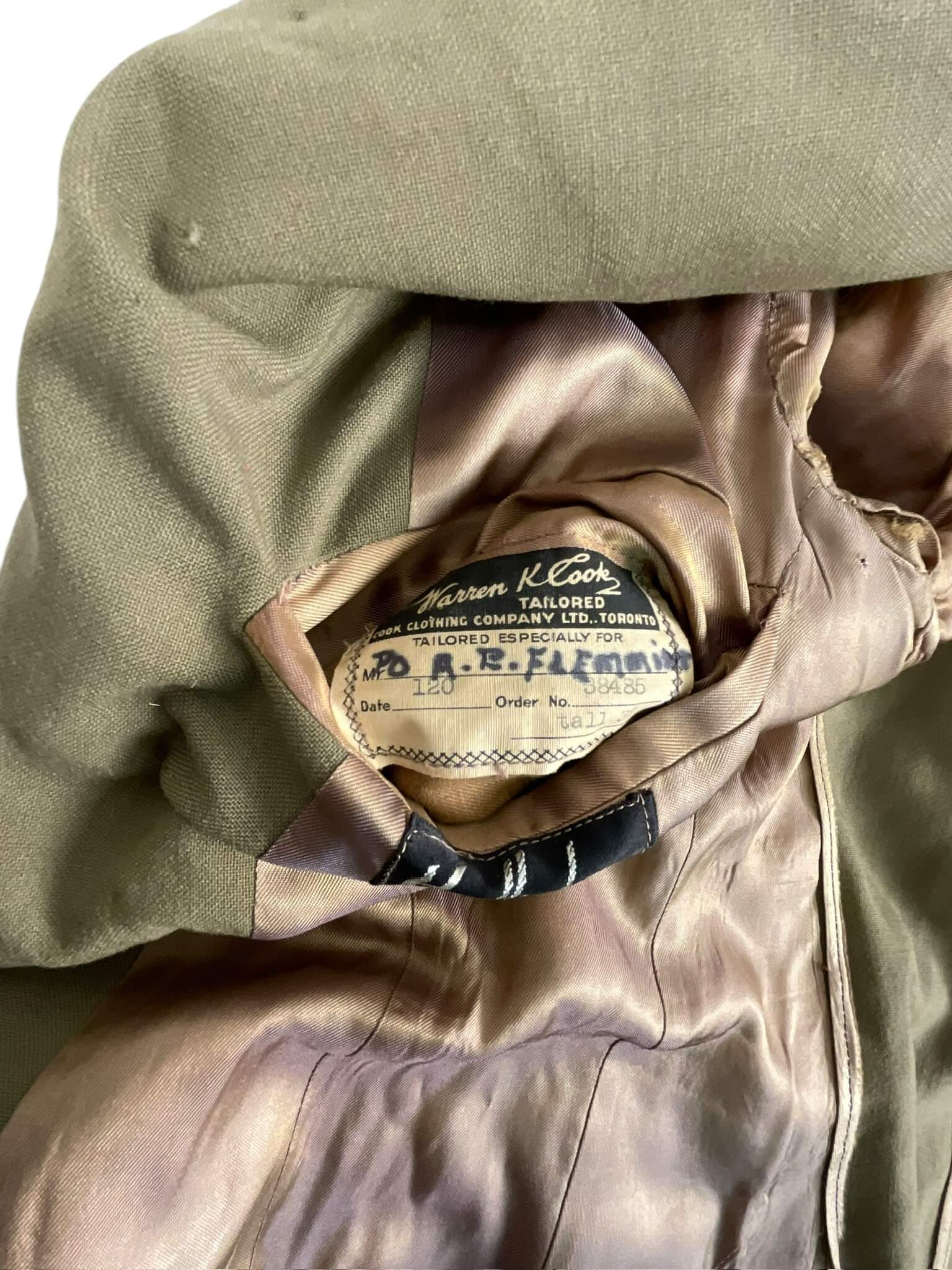 WW2 Canadian RCAF Tropical Worsted Officers 4 Pocket Service Dress Tunic Named