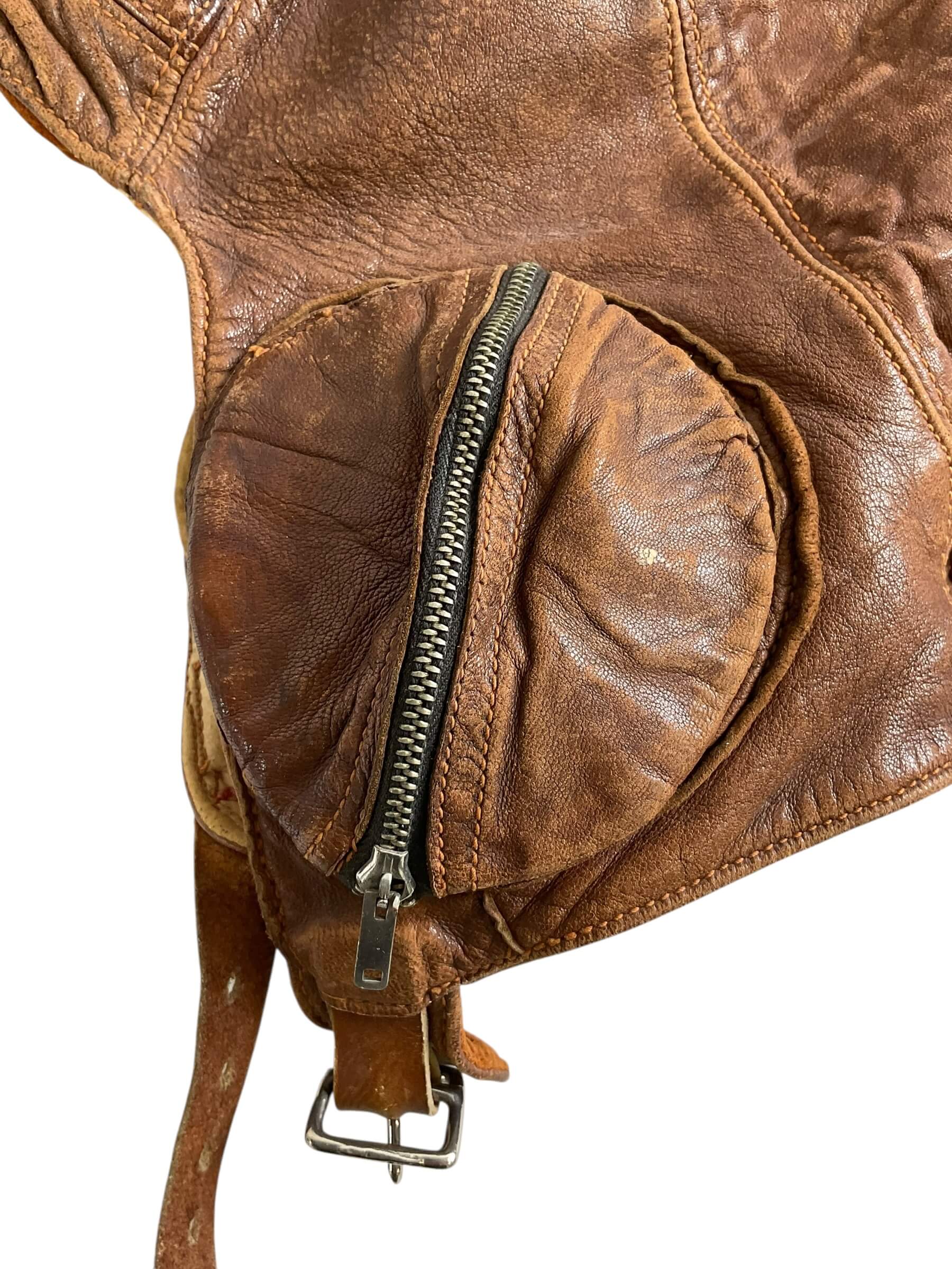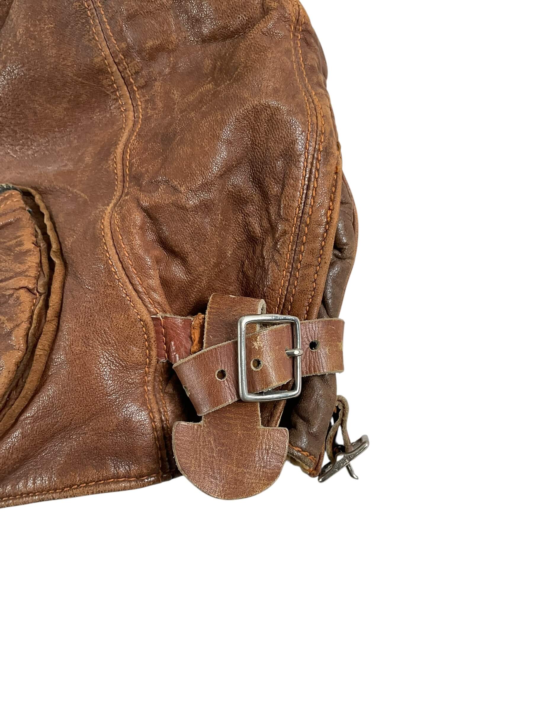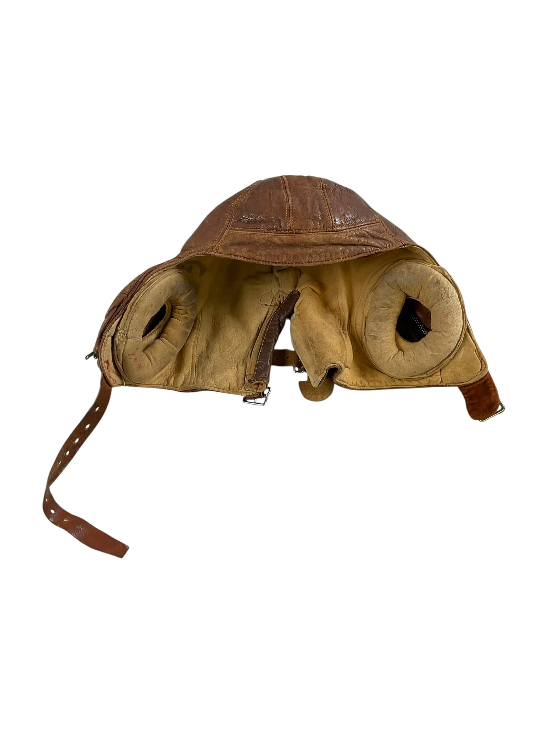 The WW2 Canadian RCAF Type B Leather Flying Helmet is a remarkable piece of military aviation history, used by the Royal Canadian Air Force during the Second World War. Crafted with durable leather, the helmet was designed to protect pilots from harsh weather conditions and low temperatures at high altitudes. This crucial piece of equipment was equipped with built-in earphones for communication and glass eye shields for clear vision. The interior featured a layer of warm, comfortable sheepskin, ensuring a snug fit and comfort during long flights. With its robust construction and vintage aesthetics, it’s a testament to the bravery and resilience of the pilots who wore it. Each helmet carries an individual story of courage and dedication, making it a highly valued collectible for military history enthusiasts and aviation collectors worldwide.