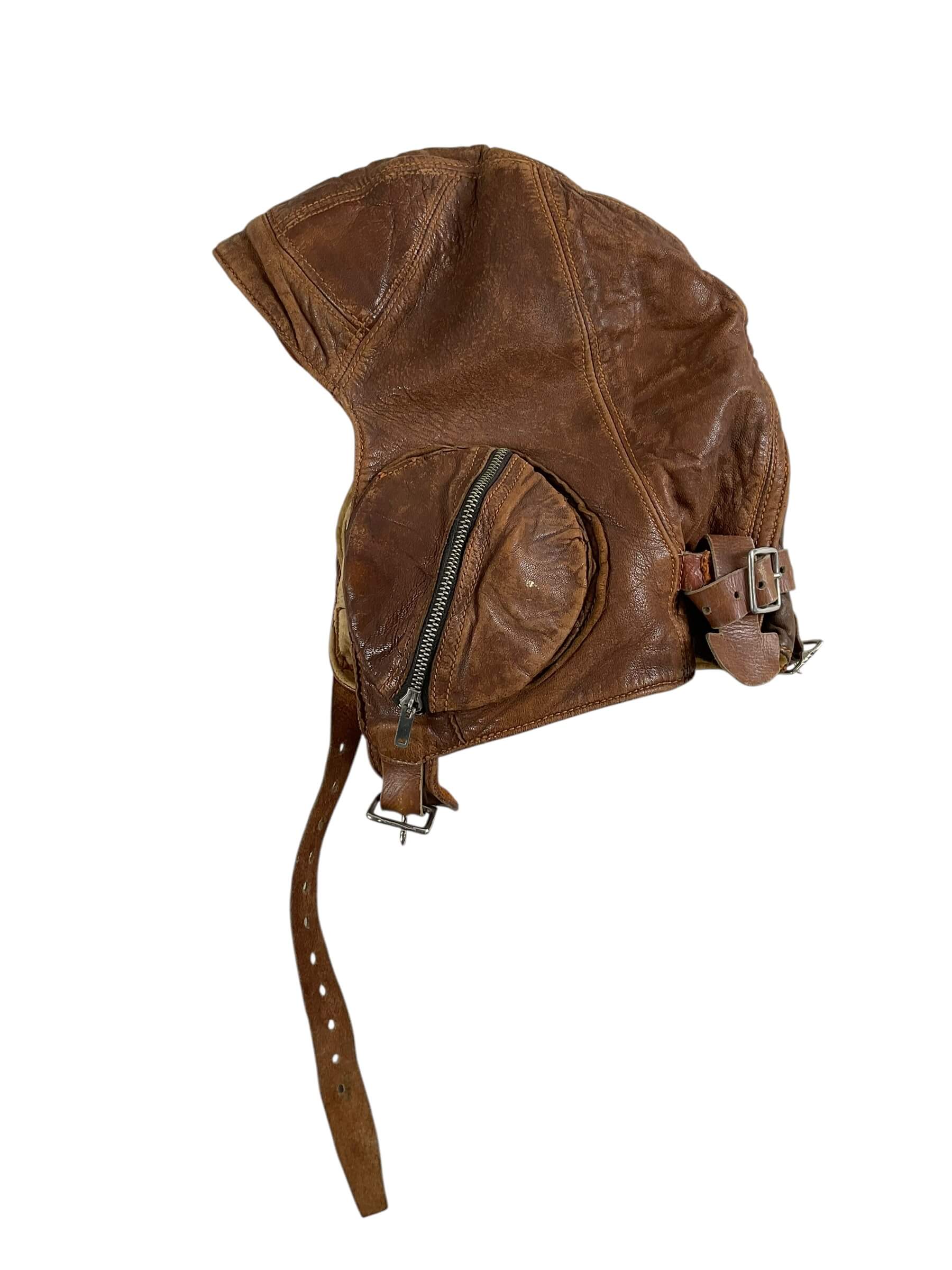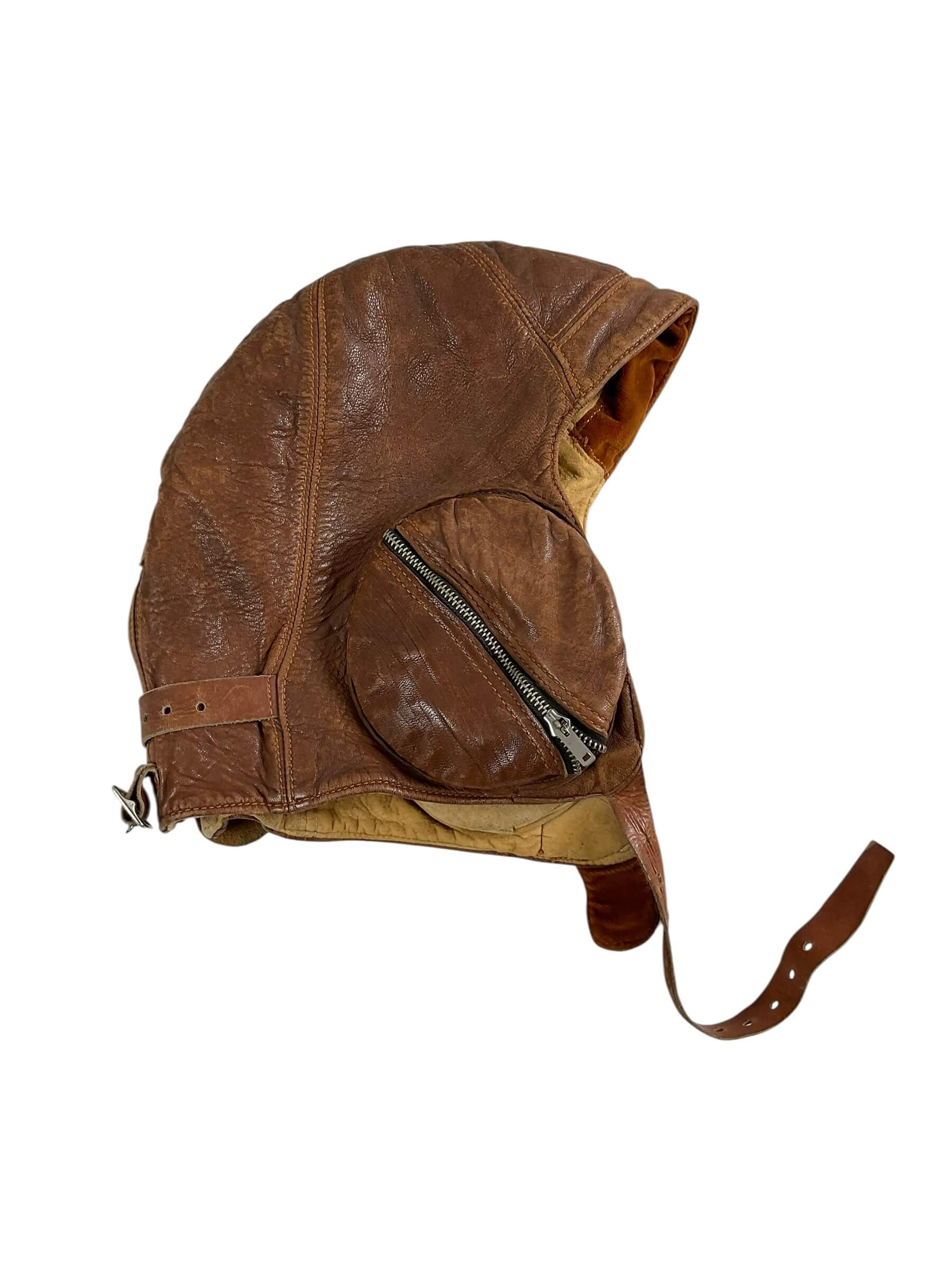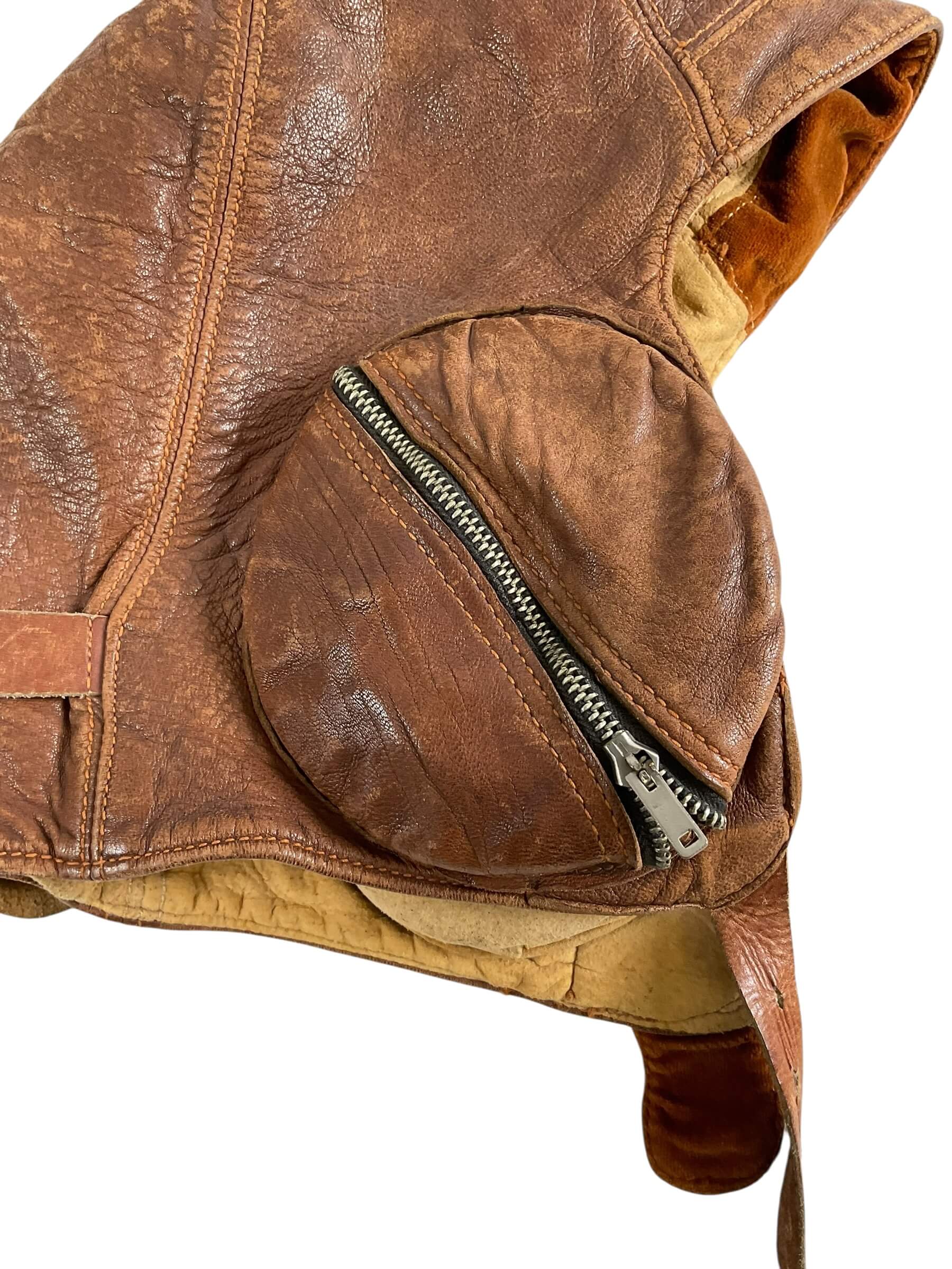 The WW2 Canadian RCAF Type B Leather Flying Helmet is a remarkable piece of military aviation history, used by the Royal Canadian Air Force during the Second World War. Crafted with durable leather, the helmet was designed to protect pilots from harsh weather conditions and low temperatures at high altitudes. This crucial piece of equipment was equipped with built-in earphones for communication and glass eye shields for clear vision. The interior featured a layer of warm, comfortable sheepskin, ensuring a snug fit and comfort during long flights. With its robust construction and vintage aesthetics, it’s a testament to the bravery and resilience of the pilots who wore it. Each helmet carries an individual story of courage and dedication, making it a highly valued collectible for military history enthusiasts and aviation collectors worldwide.