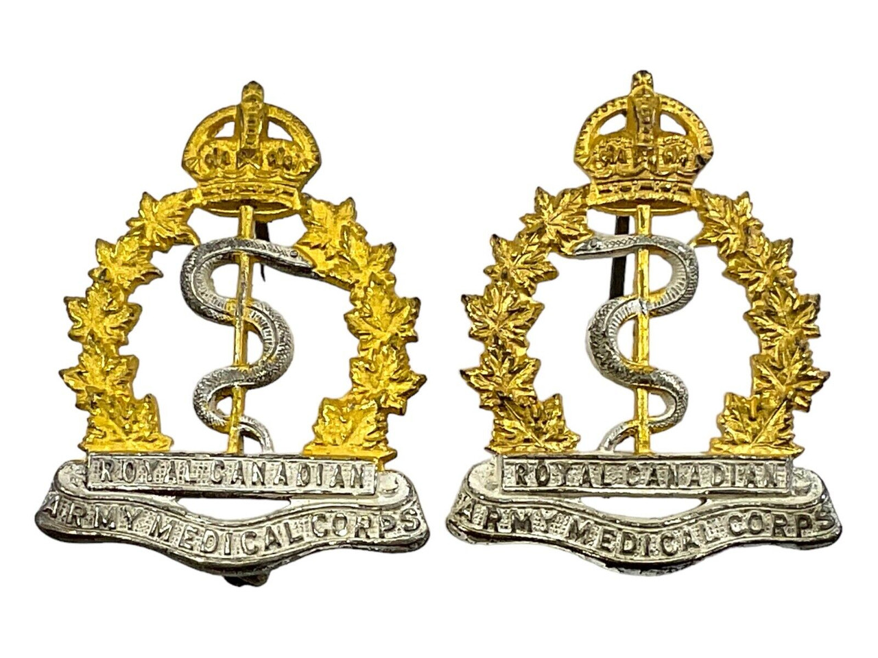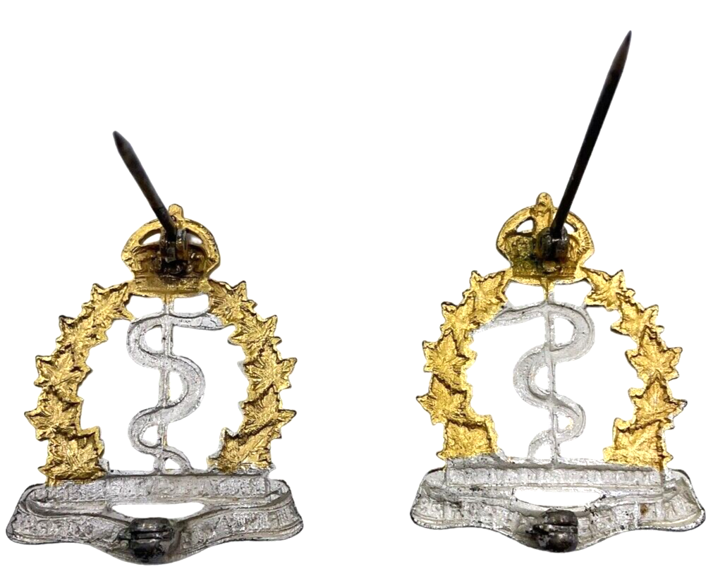 WW2 Canadian RCAMC Medical Corps Officers Collar Badge Insignia Pair Scully Made