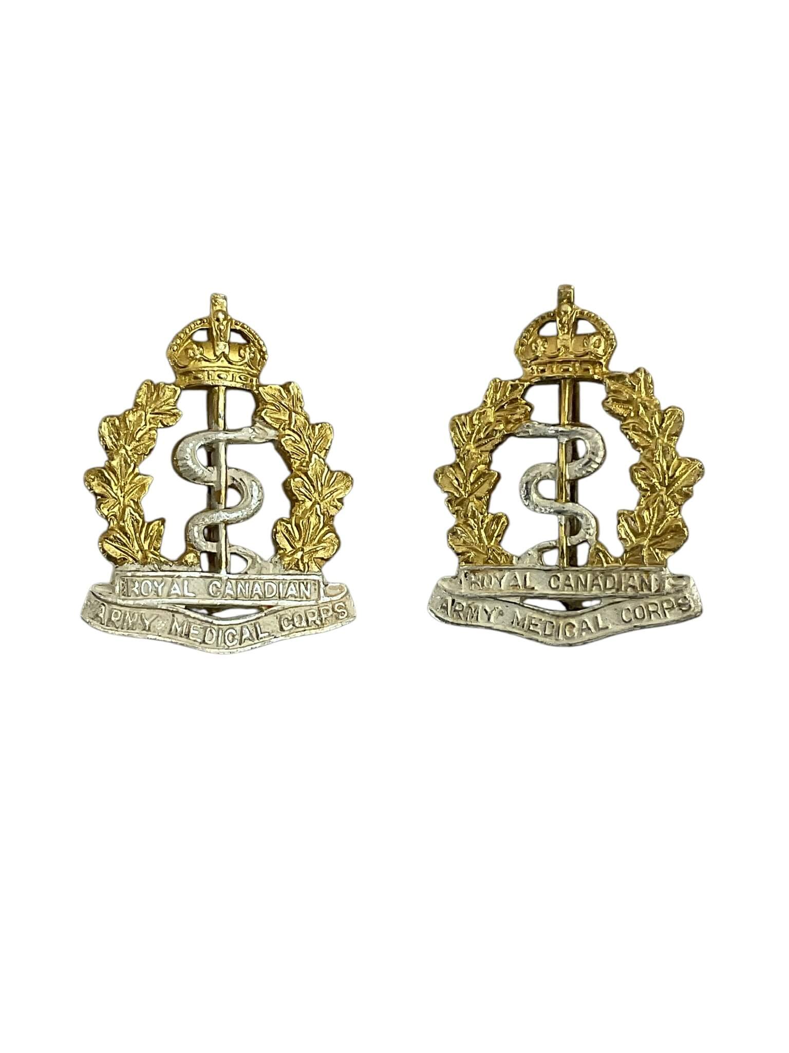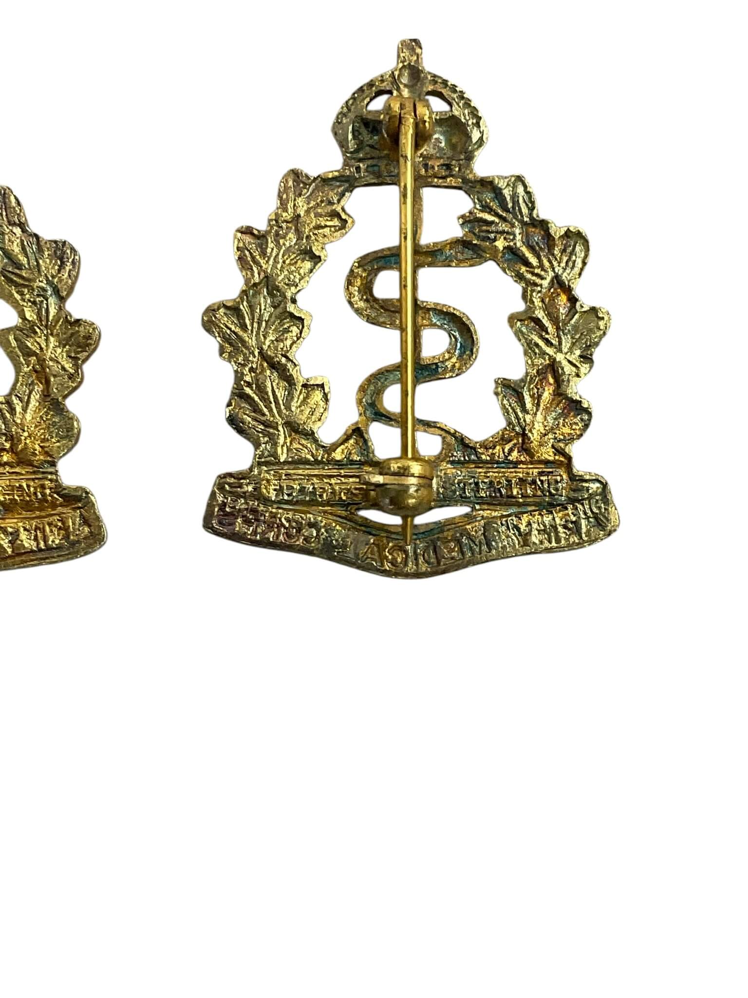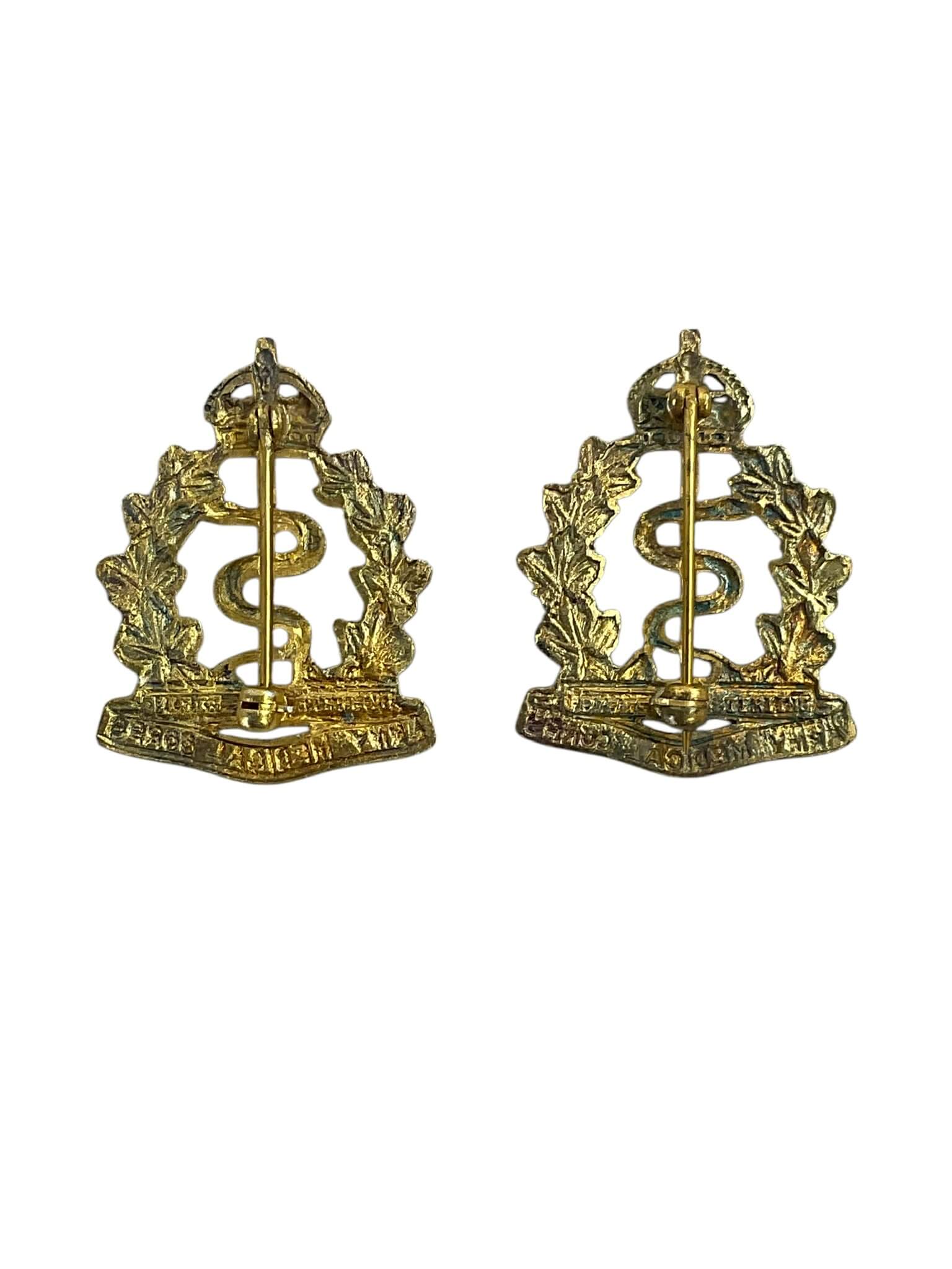 WW2 Canadian RCAMC Medical Corps Officers Collar Badge Insignia Pair