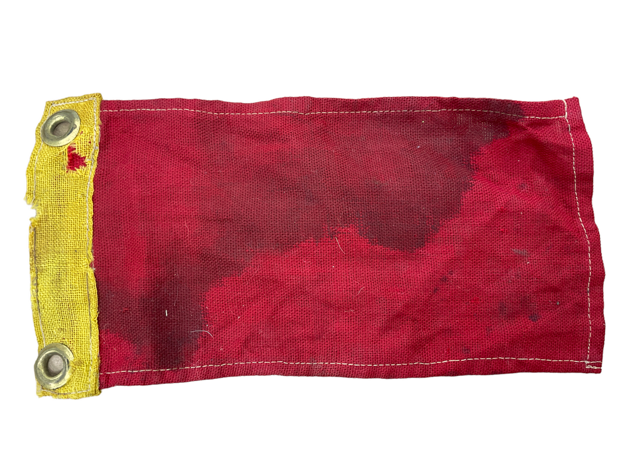 This authentic World War II artifact is a Canadian Signal Flag used by the Royal Canadian Corps of Signals (RCCS) and the Royal Canadian Navy (RCN). The flag, carefully crafted from multiple pieces, measures 9 x 4 inches and represents a significant piece of military history. Signal flags were crucial for communication at sea and in the field, enabling coordinated operations and strategic maneuvers. The flag’s robust construction and vibrant colors reflect the meticulous standards of wartime manufacturing. This collectible item not only embodies the bravery and dedication of Canadian forces during the conflict but also serves as a tangible link to the ingenuity and resilience of wartime communication methods. Whether you are a military enthusiast or a collector of historical memorabilia, this WW2 Canadian RCCS RCN Signal Flag is a remarkable and educational addition to any collection.