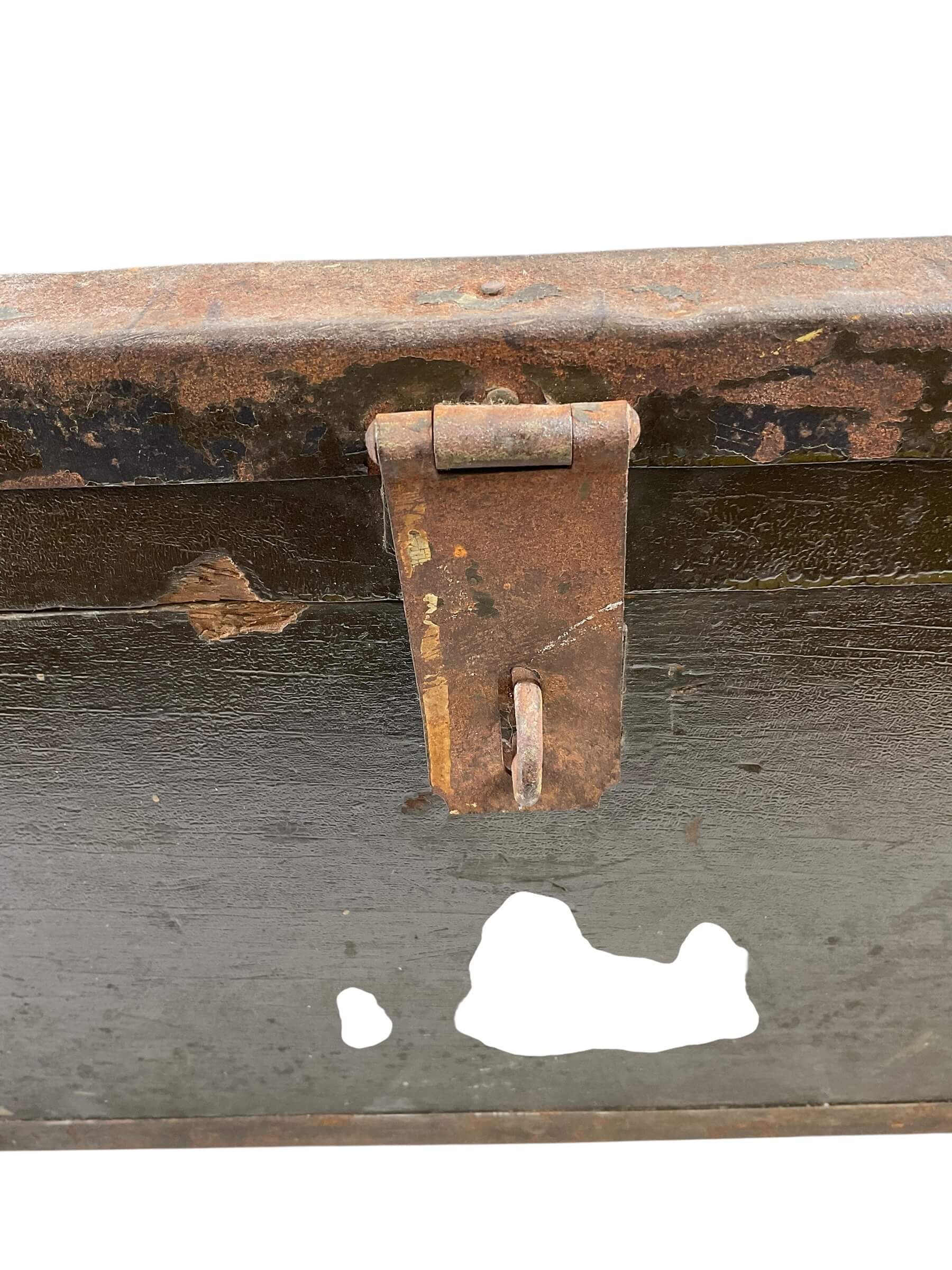 The ‘WW2 Canadian RCEME Named Barracks Box’ is a historical artifact from the World War II era, specifically associated with the Royal Canadian Electrical and Mechanical Engineers (RCEME). This unique item is a named barracks box, which was typically used by soldiers for storing personal belongings like letters, photographs, and small keepsakes. Each box was personalized with the name of the soldier, presenting a poignant snapshot of history. This particular box offers a glimpse into the lives of the Canadian RCEME during World War II, highlighting their contribution in maintaining and repairing the military’s mechanical, electrical, and vehicular equipment. The box is not just a military artifact, but a tangible connection to Canada’s past and the brave individuals who served in the RCEME.