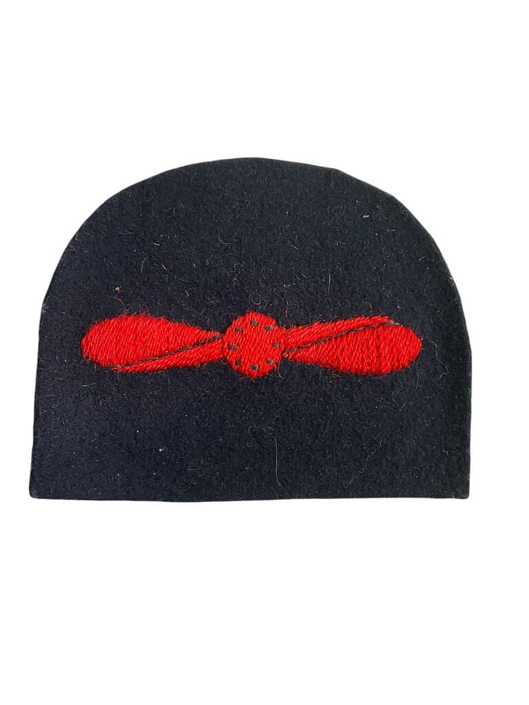 The WW2 Canadian RCN Air Mechanic Trade Patch is a military emblem from the Royal Canadian Navy during World War II. This round patch, featuring a winged propeller, represents the Air Mechanic trade. It’s a vintage artifact of Canada’s war effort, invaluable to collectors of military memorabilia.