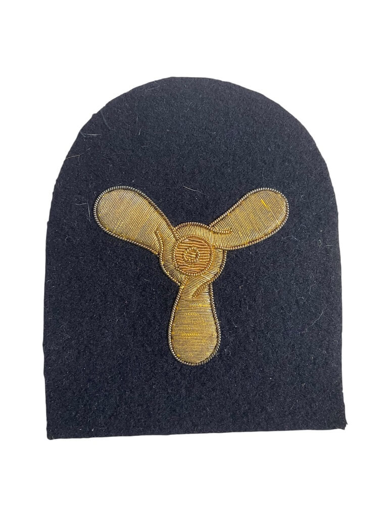 The WW2 Canadian RCN Engineering Mechanic Bullion Wire Trade Patch is a historical insignia piece from Royal Canadian Navy. Created during World War II, it was worn by engineering mechanics. This patch features handcrafted bullion wire embroidery, symbolizing the trade skills of its wearer. It serves as a tangible marker of Canadian naval heritage.