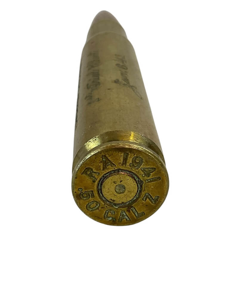 This item is a historic artifact from WWII, specifically a 50 Cal round that can be traced back to the Canadian Royal Canadian Navy’s HMCS Calgary. The round is marked with the significant date of June 6, 1942, indicating it was part of the ship’s first trial shot. This artifact presents a unique glimpse into the naval operations of the WWII era, showcasing the military technology used by the Canadian forces. The HMCS Calgary was a crucial part of the Canadian fleet during the war, serving in various theatres of operation. This 50 Cal round is not only a piece of military history but also a symbol of Canada’s contribution to the Allied efforts during the Second World War.