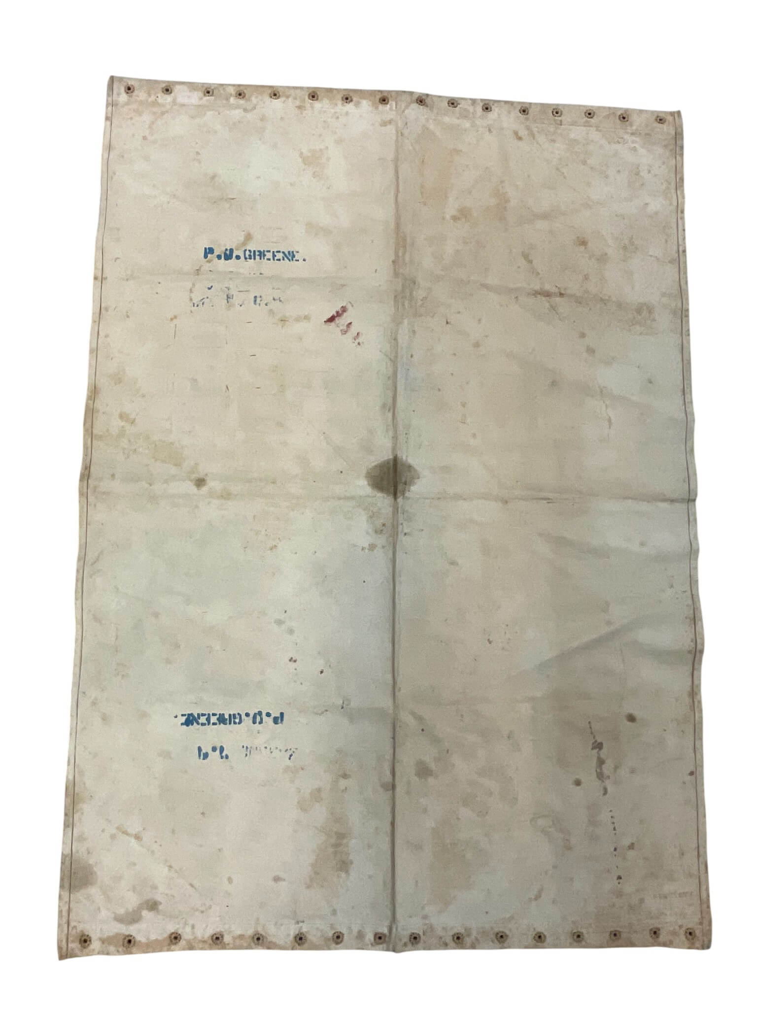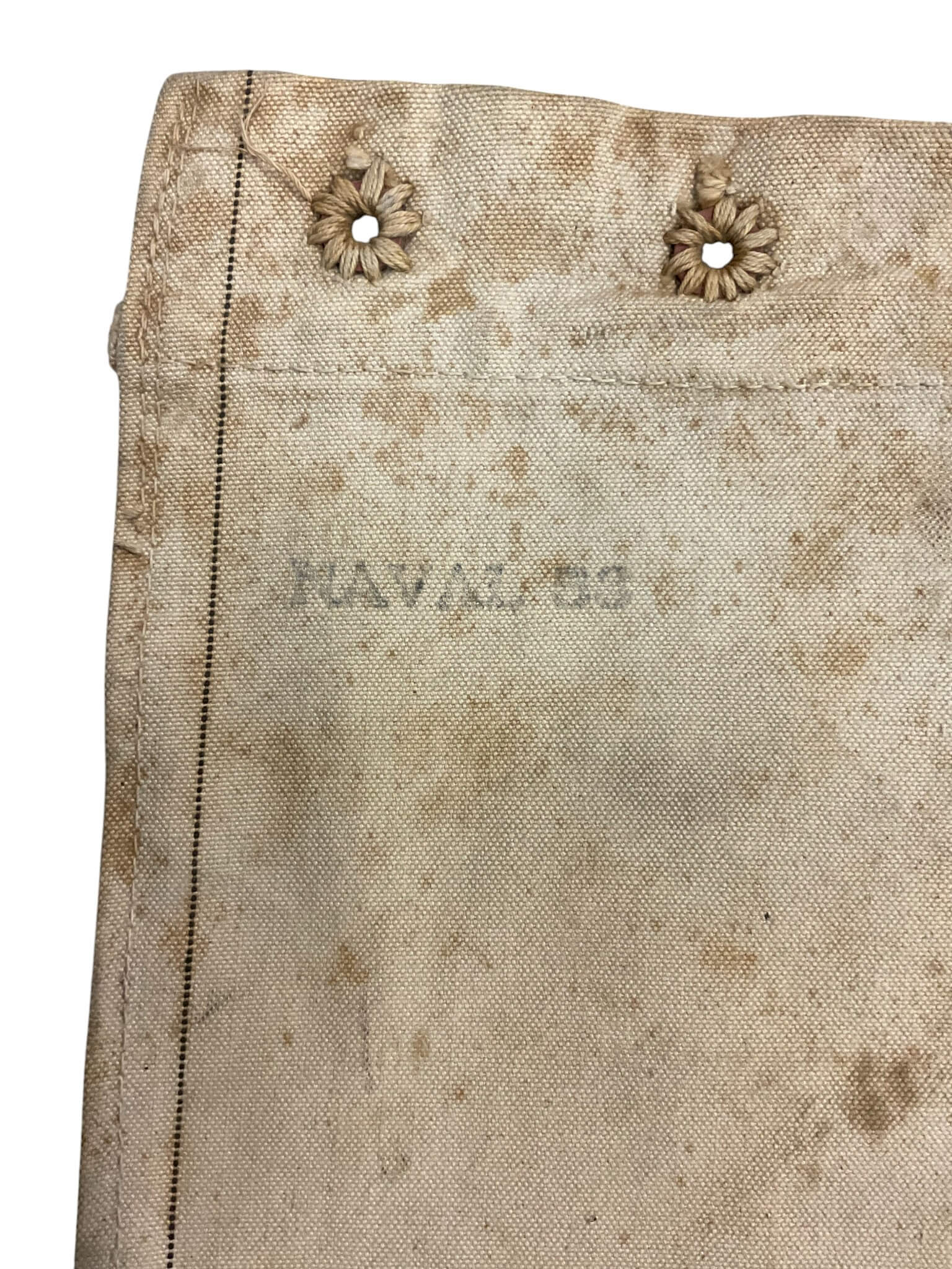 This is an original World War II era Royal Canadian Navy (RCN) cot. Used by naval personnel during the conflict, this folding canvas and metal cot served as a standard sleeping arrangement aboard Canadian naval vessels and in shore facilities from 1939 to 1945. The cot features a sturdy tubular steel frame and heavy-duty khaki canvas material, designed for both portability and durability. It is marked with the name of the original service member, adding provenance and a personalized connection to its military history. The cot exhibits period-typical construction methods and wear consistent with age and use, including possible markings and stamps from the Royal Canadian Navy. Such cots were essential for providing practical and transportable bedding in various operational environments faced by the Canadian Navy in World War II. This item represents an authentic piece of Canadian military equipment from a pivotal period in 20th-century history.
