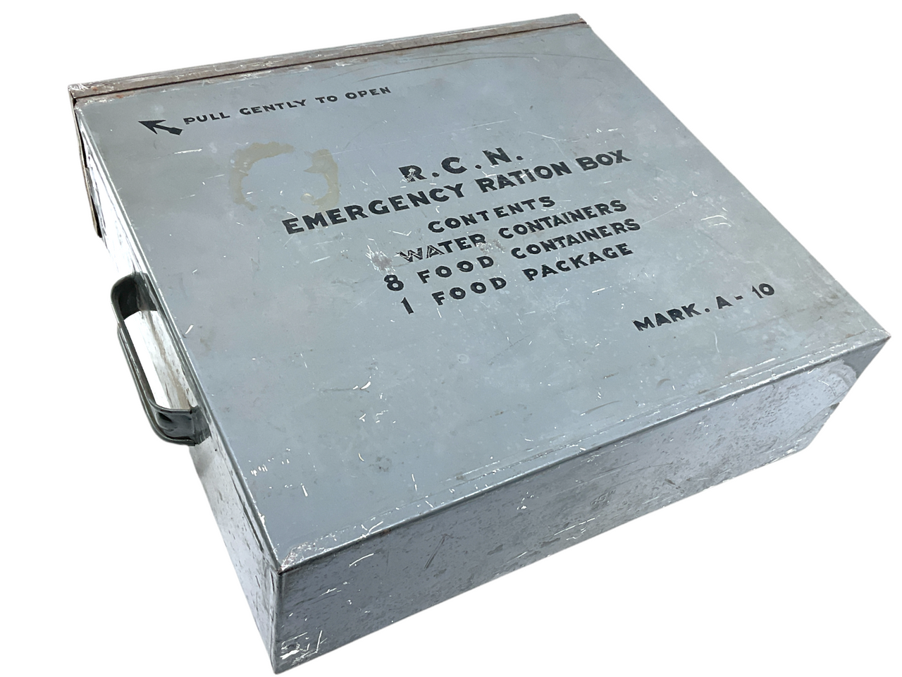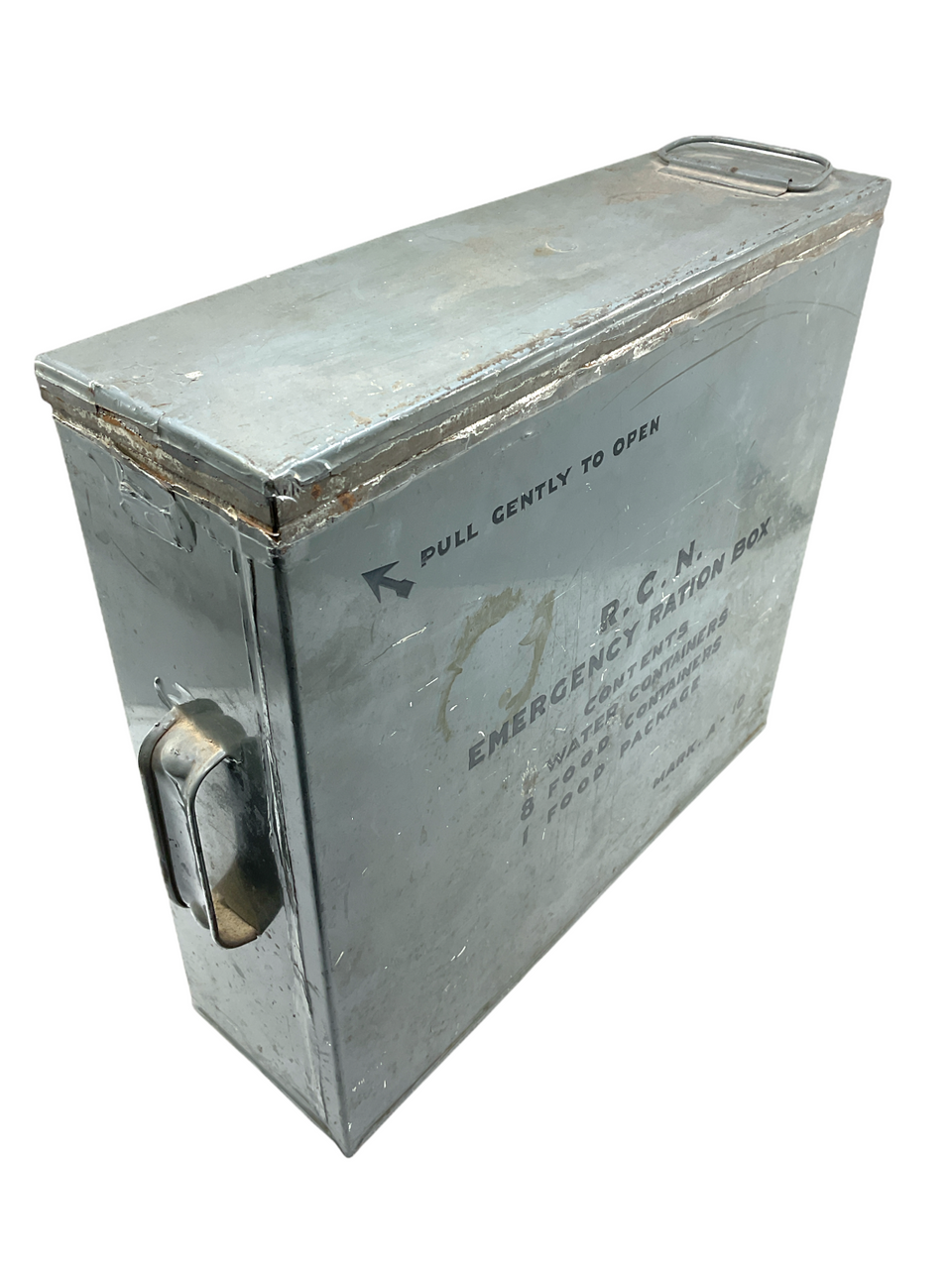 The ‘WW2 Canadian RCN Navy Emergency Ration Box GSW 1942 Dated’ is a significant historical artifact from the Second World War. This ration box was issued by the Royal Canadian Navy and contains emergency food supplies intended for naval personnel during critical situations. Manufactured in 1942 by General Steel Wares (GSW), a prominent Canadian company of the time, this box is a testament to the resourcefulness and preparedness of military logistics during wartime. The box itself, with its robust steel construction and dated markings, offers a tangible glimpse into the daily lives and survival strategies of Canadian sailors. Collectors and history enthusiasts will appreciate the authenticity and historical value of this wartime relic, symbolizing the endurance and resilience of those who served in the Canadian Navy during World War II.