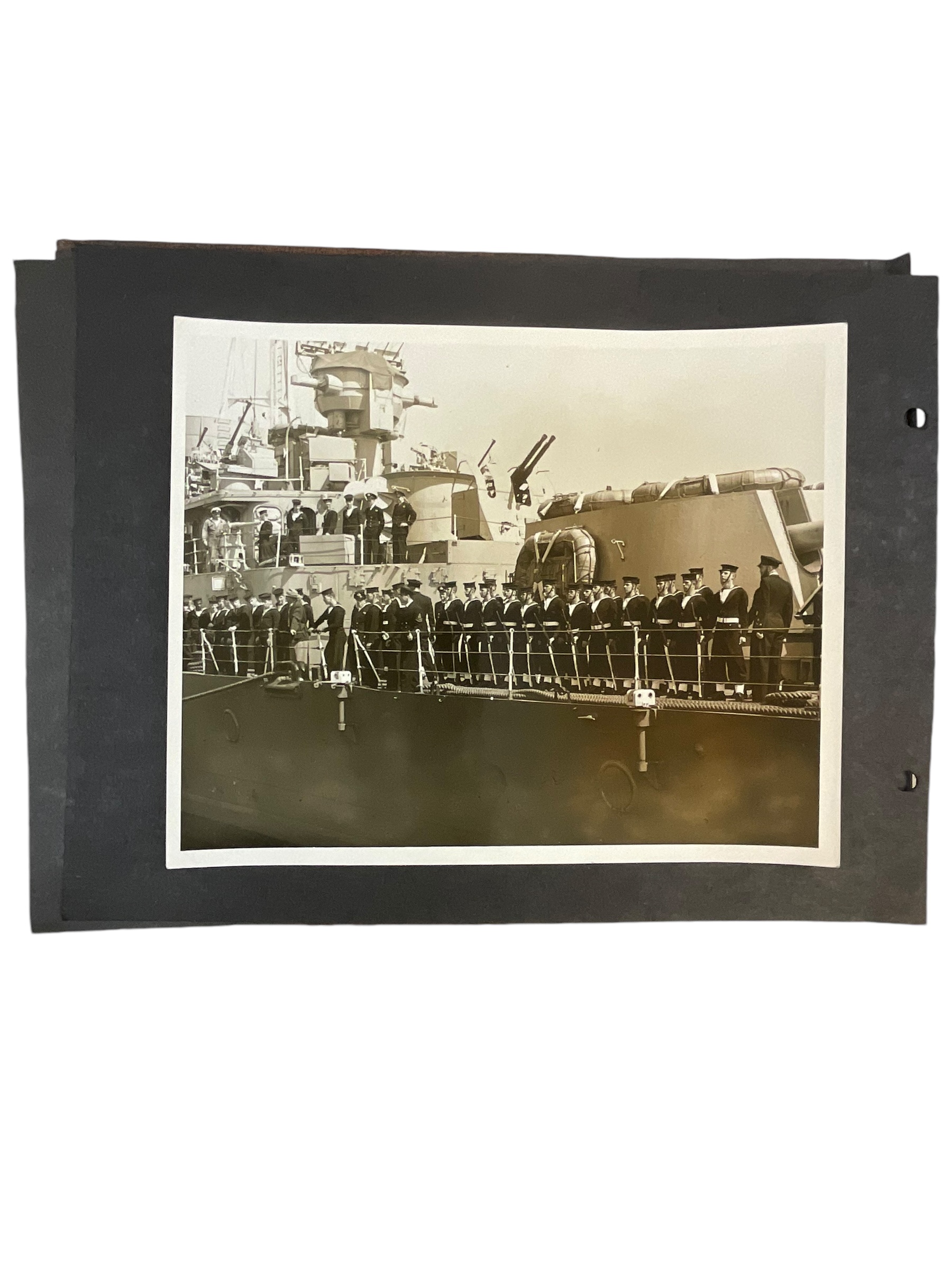 Explore the evocative journey through history with the “WW2 Canadian RCN Navy Photograph Album.” This 54-page treasure is a compelling visual documentation, offering over 100 meticulously preserved photographs attributed to Doug Samson. The album presents an intimate glimpse into the life and service of Royal Canadian Navy personnel during WWII. Revel in candid images of uniforms, capturing the essence of naval fashion and identity. The assortment of ships featured showcases the diverse naval fleet that traversed the North American waters. Beyond military life, the collection encapsulates North American travel scenes, reflecting the landscapes and locales visited by Navy members. This album is not just a historical record; it is a personal narrative that vividly brings to life the experiences of those who served. Suitable for history enthusiasts, military scholars, or collectors, this anthology provides a rare and poignant window into the past.