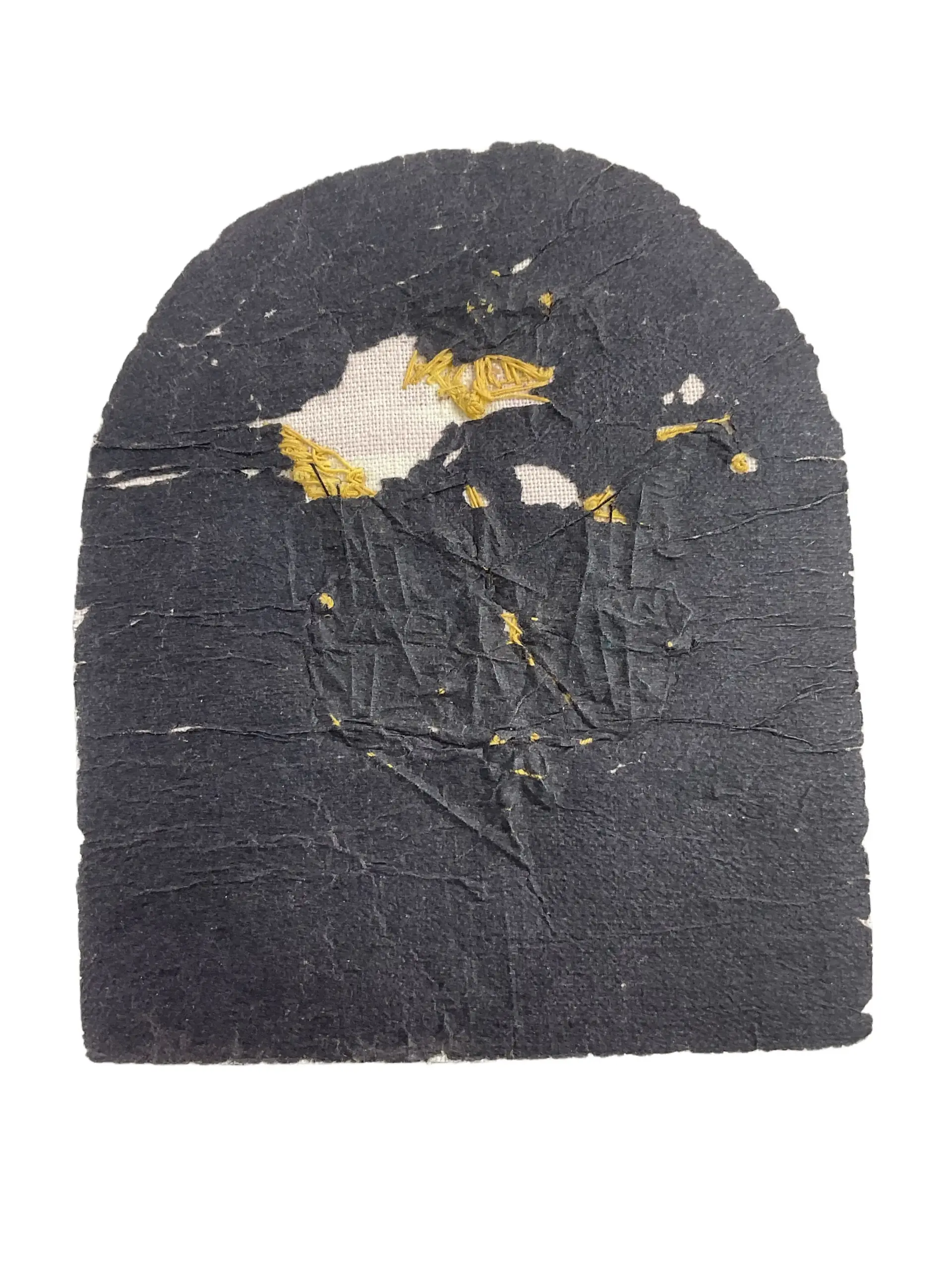The WW2 Canadian RCN Navy Radio Operator Trade Patch is an original insignia used by the Royal Canadian Navy during the Second World War. This patch was worn by naval personnel who qualified as radio operators, responsible for shipboard communications, including transmitting and receiving coded and voice messages. The patch typically features a stylized wireless lightning bolt or similar radio symbol, often embroidered in white or gold thread on a dark blue wool backing, conforming to wartime insignia standards. Placement of the trade patch was usually on the upper sleeve of naval uniforms to denote technical specialization. These insignia were part of the official system of trades and classifications introduced to organize and identify skilled roles within the RCN during the war. Items such as this offer tangible evidence of the structure, training, and daily life within the Canadian naval forces of the era. The patch reflects both the evolution of military communication and the specialized skills required in wartime service.